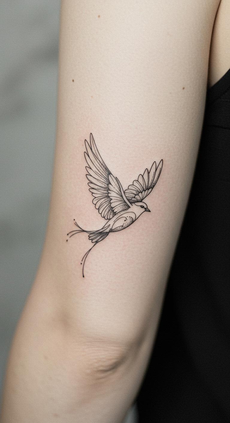 A bird in flight tattoo soars high. It means liberation and rise. Opt for wings on your arm. Free spirit. Check for 500 rupees. Draw birds in motion. This lifts ideas. Add feathers lightly. DIY: Bird cutouts test it. Feel the flight. Let it symbolize escape. Keep it airborne. This option wings you forward.