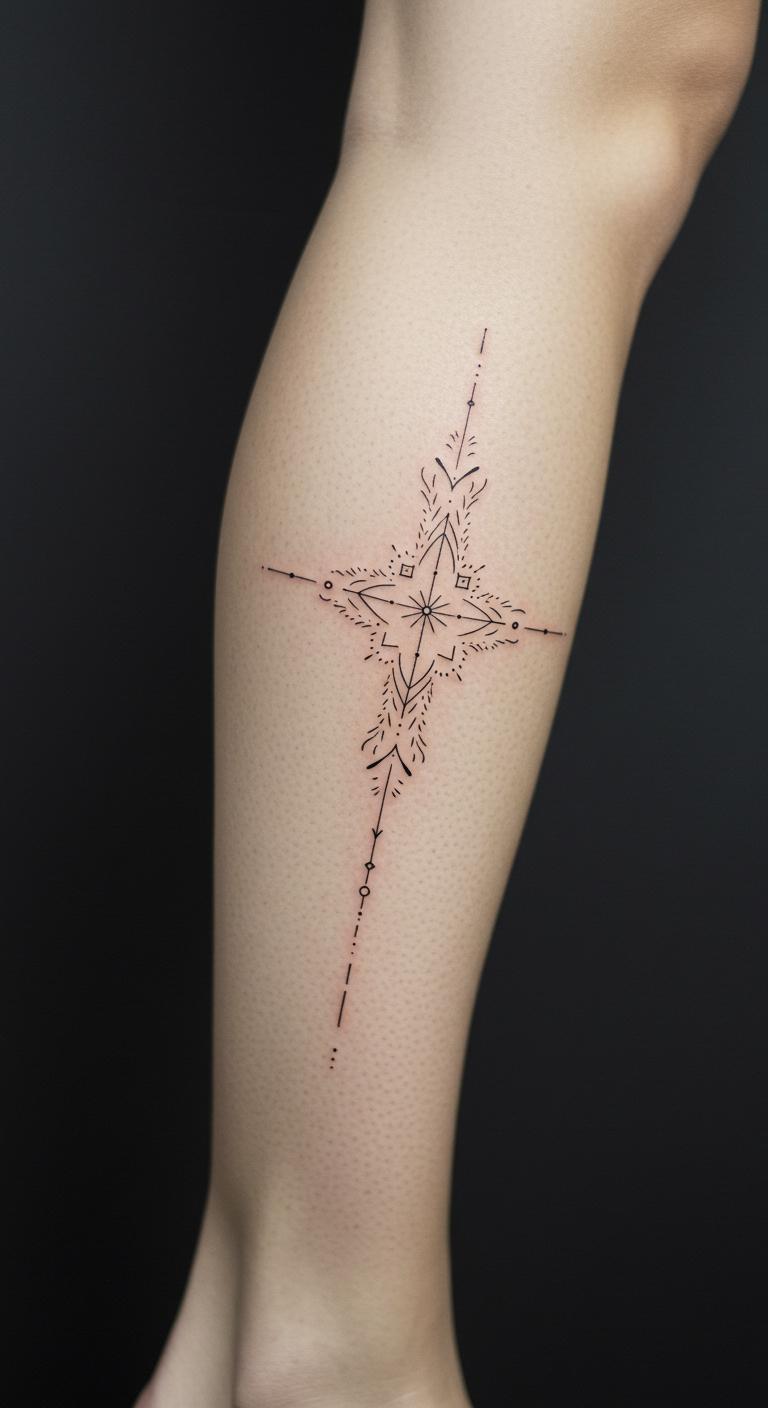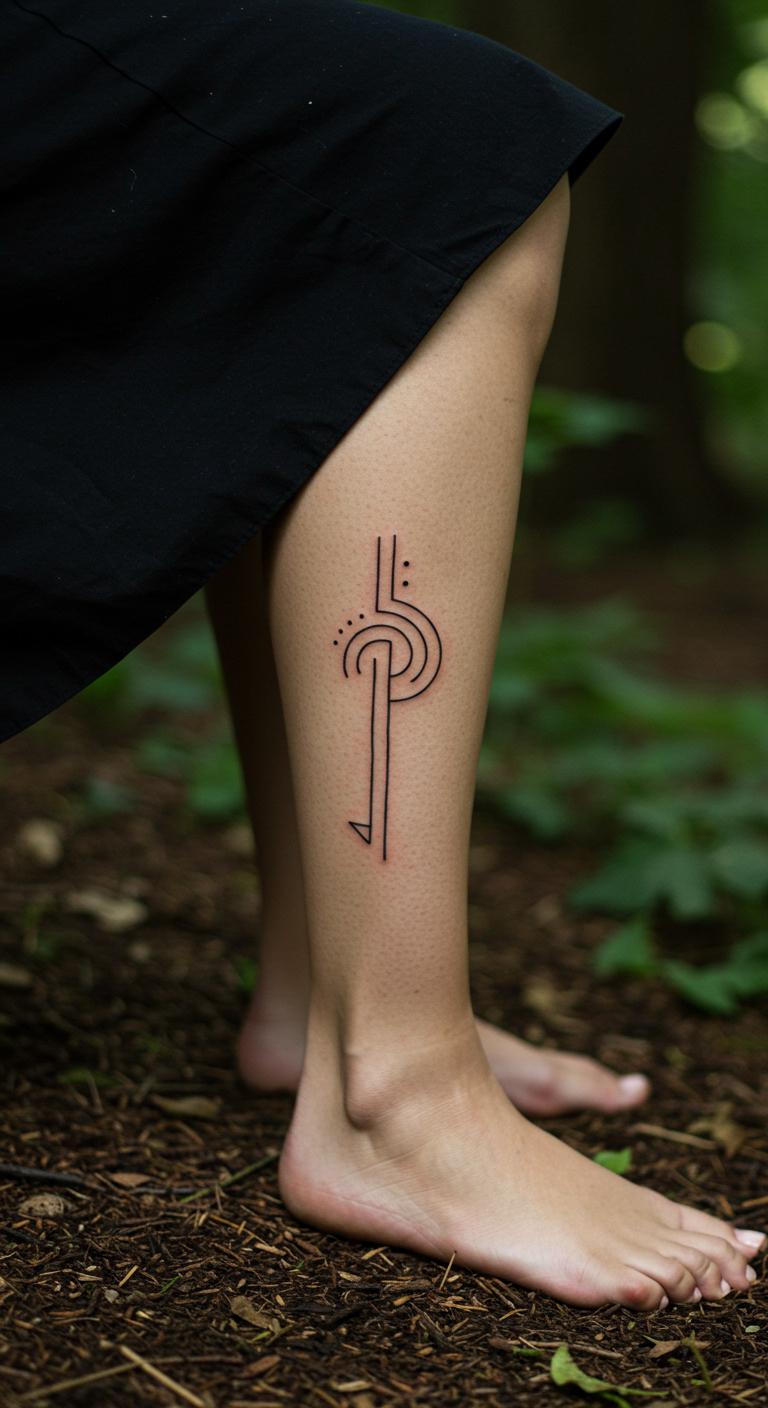 Strength symbols on your leg represent your path in a sleek way. Try shins for grounding.