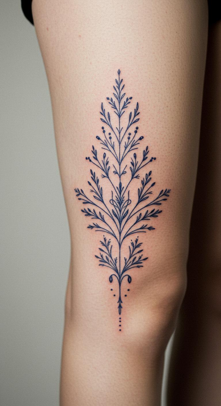 Leg tattoos that hide under pants offer practical elegance. Choose small spots for this.
