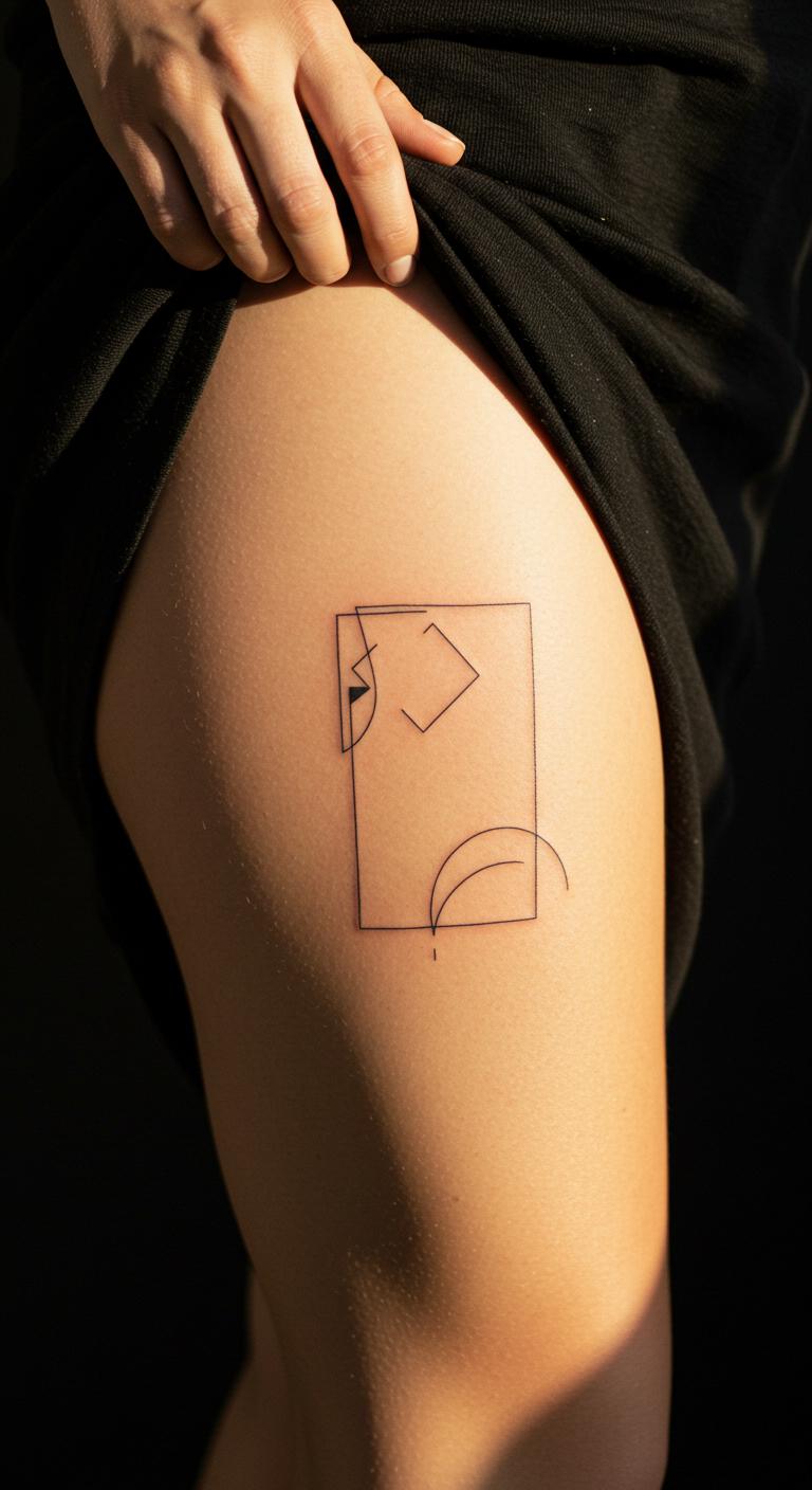 Picture fine lines and shapes that create a modern vibe on your leg. Start with a simple triangle or circle for a polished finish. These tattoos work well on calves or thighs. They highlight your taste for clean art.