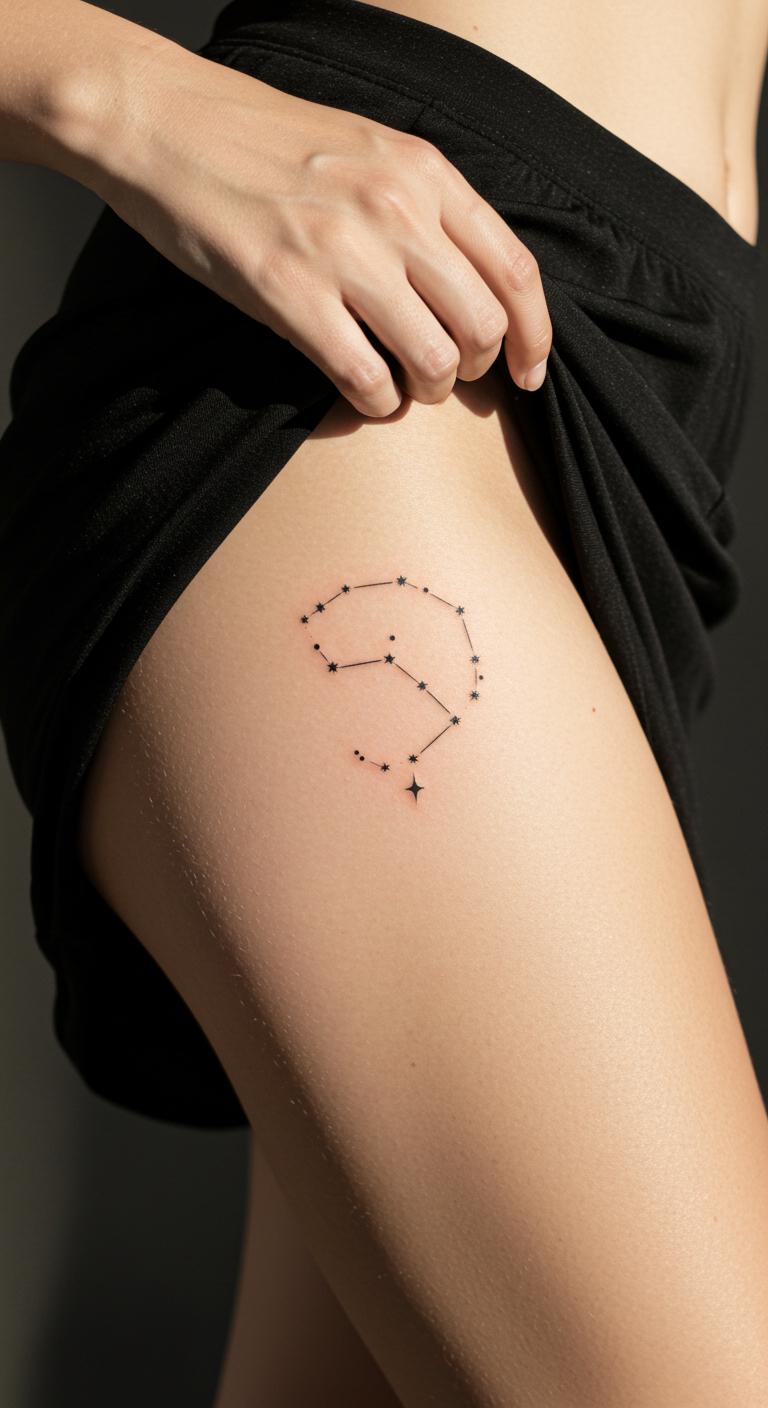 Zodiac tattoos on your leg show your stars in a refined style. Pick a sign for your thigh to reflect personality.