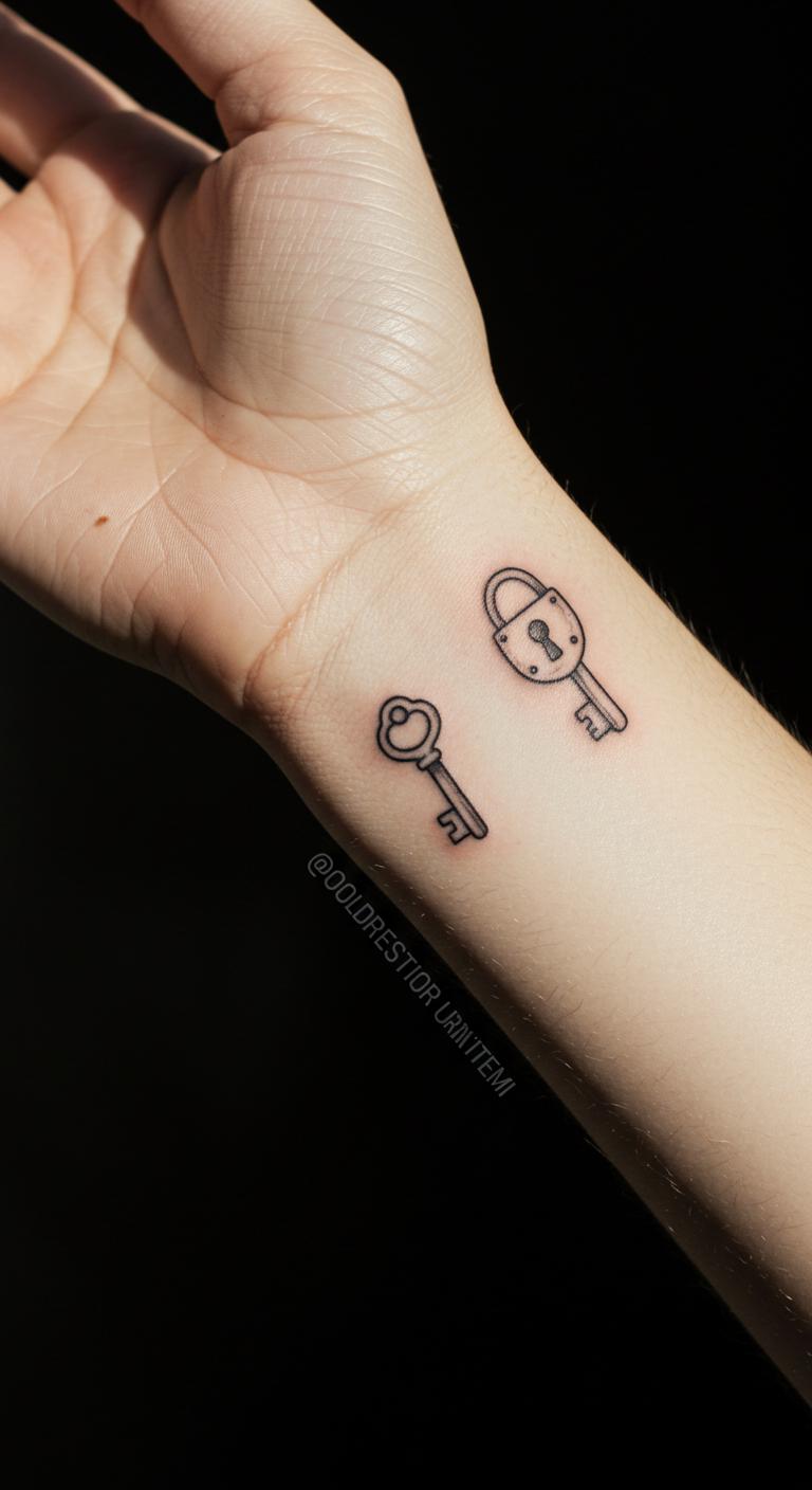 Think of your relationship as a perfect fit. Lock and key tattoos represent trust and access. Place them on fingers for easy hide. Costs stay low—expect $60 or less per piece. Sketch at home using a basic drawing app on your phone. Draw the shapes and swap with your partner. Keep lines straight and simple. This idea suits long-distance pairs. Add a heart detail for fun. Bold the tip: pick matching sizes. Visit a budget studio during off-peak hours for discounts. Practice with temporary tattoos from the store. They cost pennies and wash off quick. Make it DIY by tracing designs on paper. Focus on comfort areas like the ankle.