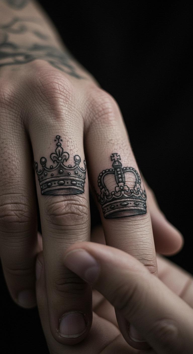 Rule together. Crown tattoos show empowerment. Try fingers for flair. Costs under $60. Draw crowns on paper. Add jewels with dots. Keep it minimalist. Perfect for power couples. Bold this: customize sizes. Check local markets. Practice with crowns from cards. Make a DIY with foil. Focus on style.