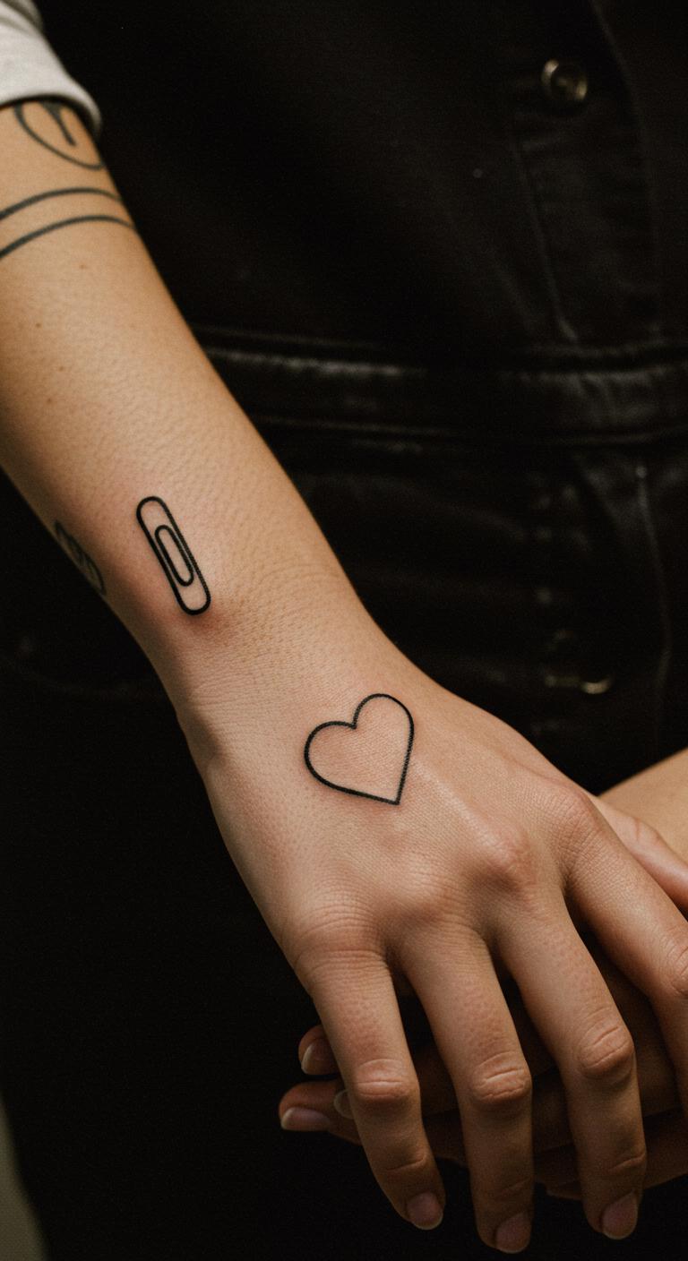 Hold with love. Clip and heart tattoos mix fun and affection. Try hands for view. Costs near $50. Sketch clips with hearts. Blend them smoothly. Keep it playful. Suits lighthearted duos. Bold the tip: add beats. Find combo deals. Test with drawings. Create a DIY with clips. Keep it cheerful.