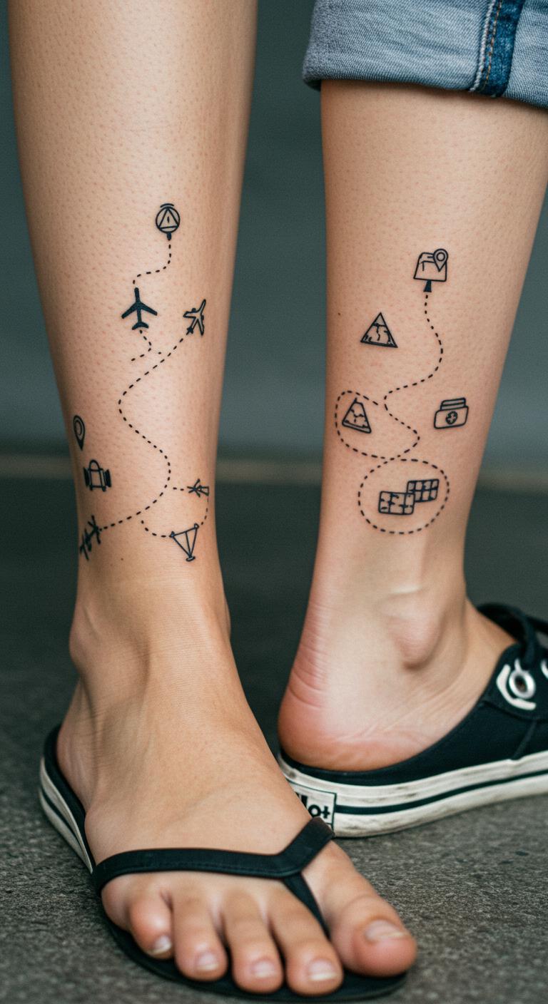 Explore as one. Travel tattoos mark journeys. Place on ankles. Budget at $55. Draw icons from trips. Add routes simply. Keep it wanderlust. Perfect for explorers. Bold this: include landmarks. Look for trip specials. Practice with maps. Make a DIY with pins. Focus on paths.