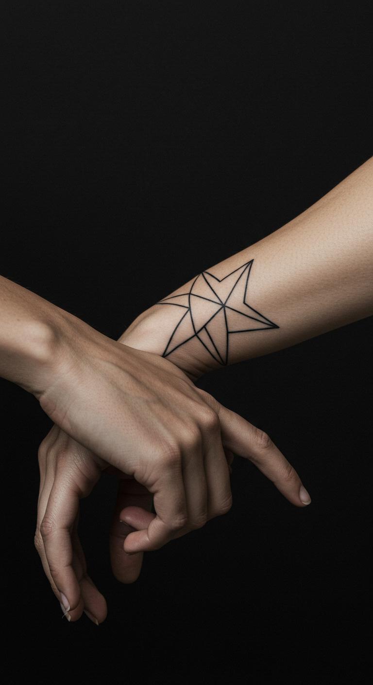 Shapes that link up. Geometric tattoos mean harmony and strength. Try thumbs for easy cover. Expect costs under $70. Draw grids at home on graph paper. Arrange patterns with string and pins. Keep it abstract and modern. Ideal for creative pairs. Bold the point: use symmetry. Find affordable artists online. Test with temporary designs from craft stores. Create a DIY mock-up with tape on your body. Focus on simple tools.
