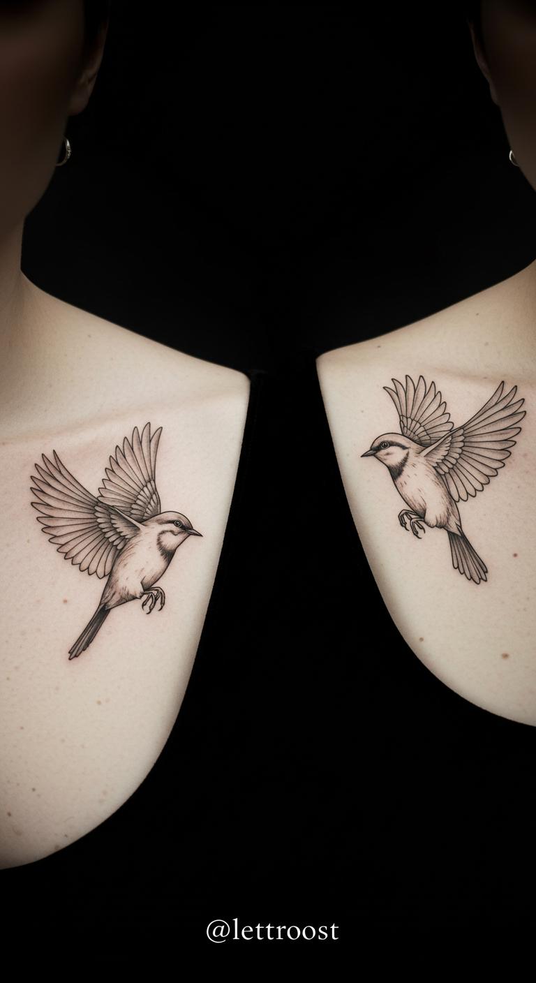 Soar as one. Bird tattoos stand for freedom and partnership. Go for behind-the-ear spots. Budget around $55. Draw birds on paper with ease. Trace from bird books. Keep them stylized and small. Suits travel buddies. Bold the tip: mirror the pose. Search for deals at local shops. Use stickers to plan. Create a DIY version with ink pens. Focus on painless areas.