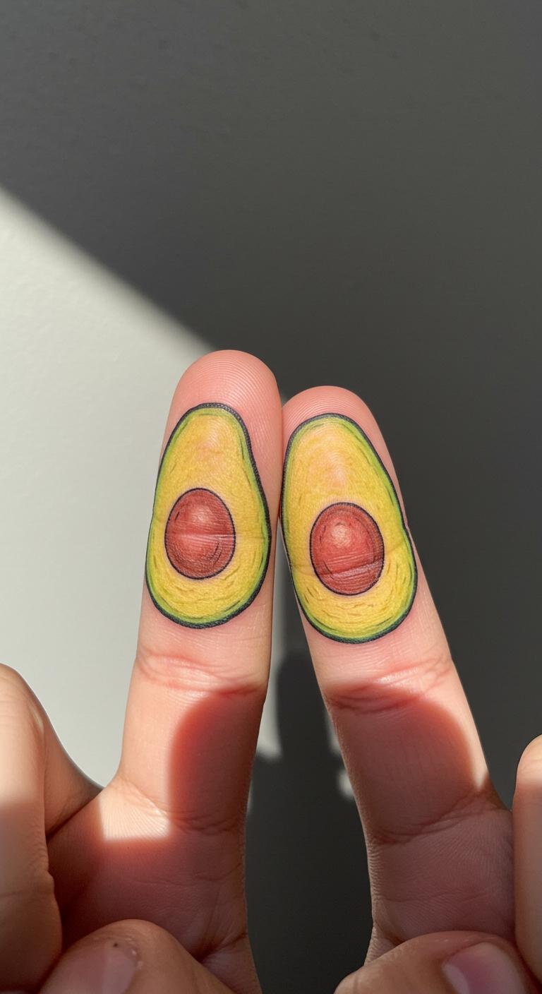 You complete me, like an avocado. These playful tattoos add humor. Put on fingers for fun peeks. Prices under $40. Draw halves at home quickly. Use fruit as inspiration. Keep it cute and basic. Ideal for fun couples. Bold the idea: add a pit detail. Find budget artists fast. Practice with food stamps. Create a DIY with clay molds. Keep it light.