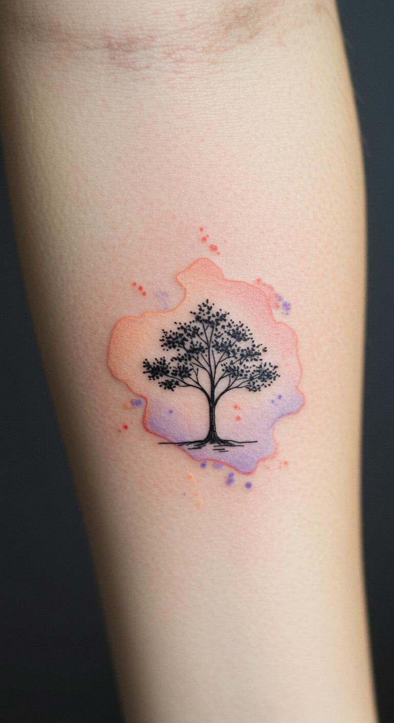 Adding sparse watercolor splashes to minimalist tattoos introduces subtle color without clutter. These designs mix simple black outlines with gentle shades of blue, pink, or yellow. Watercolor elements can be budget-friendly if limited in size. To keep costs down, pick one or two small accent areas instead of full-color fills. Experiment with temporary watercolor markers to visualize before tattooing. This combo style fits wrists, shoulders, and ankles well, adding personality without losing minimalist clarity.