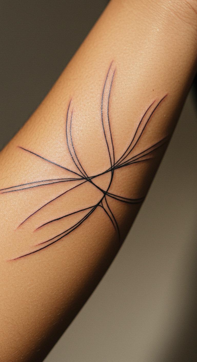 Abstract lines and shapes allow for creative minimal tattoos without strict symbols or meanings. These can be personalized easily, focusing on form and flow. Thin black lines crossing or looping offer artistic ideas that suit almost any spot. Abstract tattoos don’t usually cost much since they involve straightforward lines without shading. To design your own, draw freeform lines on paper or use digital drawing apps. These tattoos are great for those who prefer something unique without heavy symbolism.
