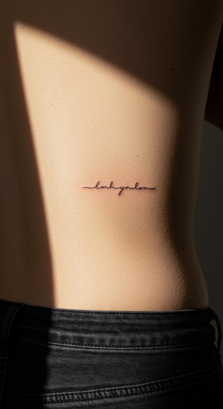 Words like “breathe,” “hope,” or “love” make powerful yet minimal tattoos. Thin script tattoos fit small spaces and provide daily inspiration. They’re usually affordable since the lettering is tiny and simple. To pick the right phrase, write your favorite words repeatedly in different fonts on paper. You can also try online calligraphy tools. Finger or wrist placements are popular because the words stay visible but unobtrusive. Keeping the font simple with fine lines helps the letters stay legible long-term.