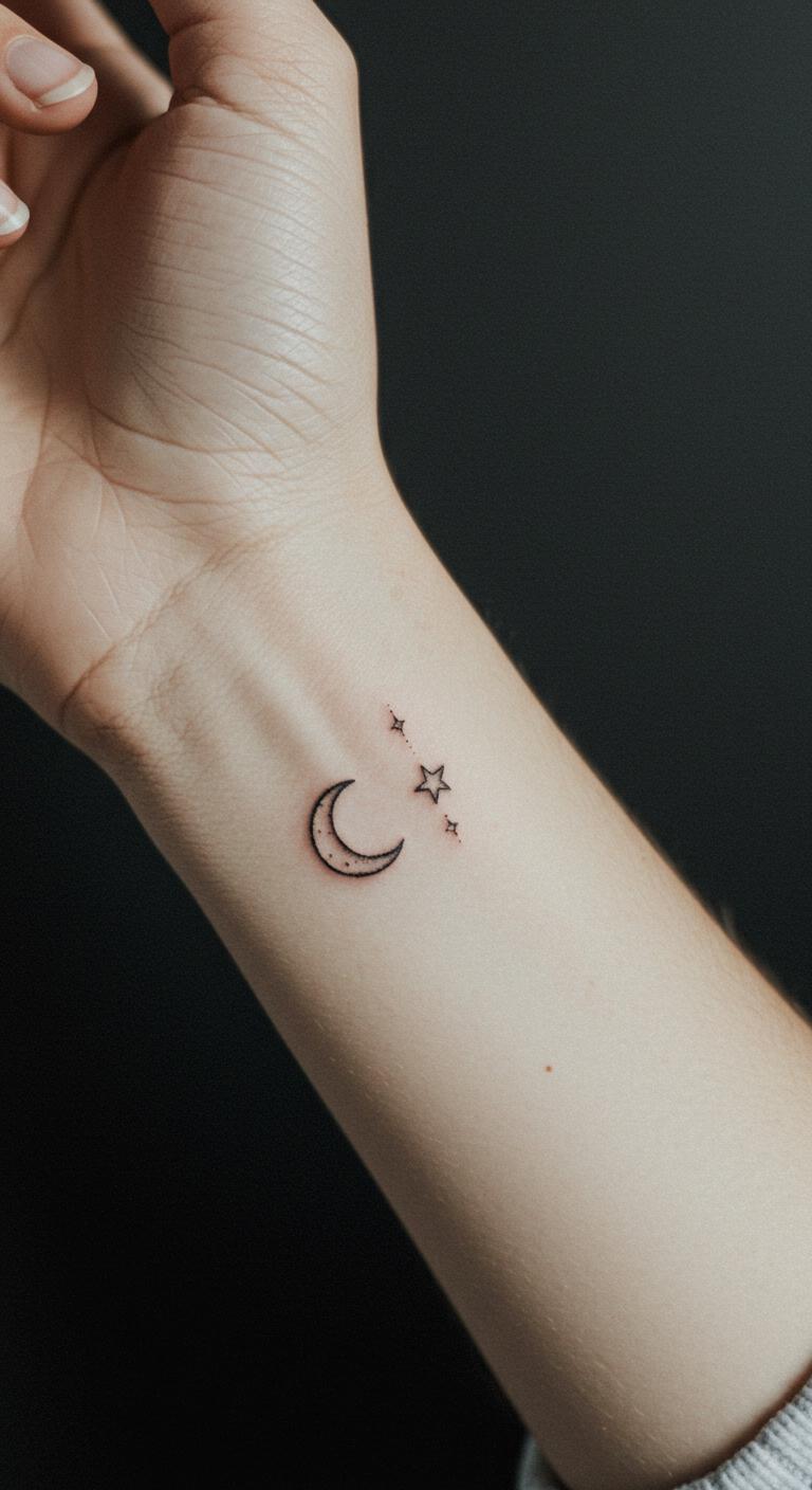 Celestial motifs—stars, moons, and planets—are hugely popular in minimalist tattooing. They carry meanings like hope, guidance, or mystery without needing a large design. These icons work well on wrists, fingers, or behind ears. Since the lines are simple, DIY temporary tattoos can help you test placement before committing. Minimalist celestial tattoos often fit within a modest budget, especially when using classic black ink. You can also combine small symbols into a mini constellation for a personal touch, creating a narrative that’s both stylish and meaningful.