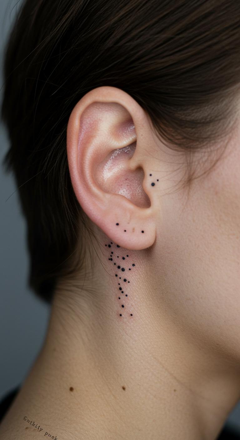 Think about the behind-the-ear spot for a hidden gem. This area lets you show off your tattoo when you want or keep it under wraps. A simple line or dot works best here. Start by sketching ideas on paper to match your style. For budget tips, visit local tattoo studios during off-peak hours for lower rates. Choose an artist who specializes in fine lines to avoid fading. Keep designs small, like a single star, for quick sessions. This placement suits busy folks who need discretion. Try drawing your design with a pen first to see how it feels. Remember, clean the area well before your appointment. Go for meaningful symbols that reflect your story. Easy care means using fragrance-free lotion afterward.
