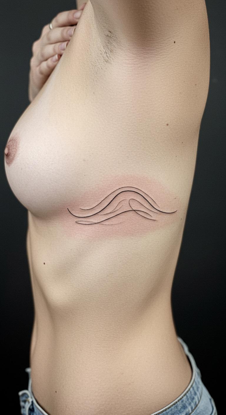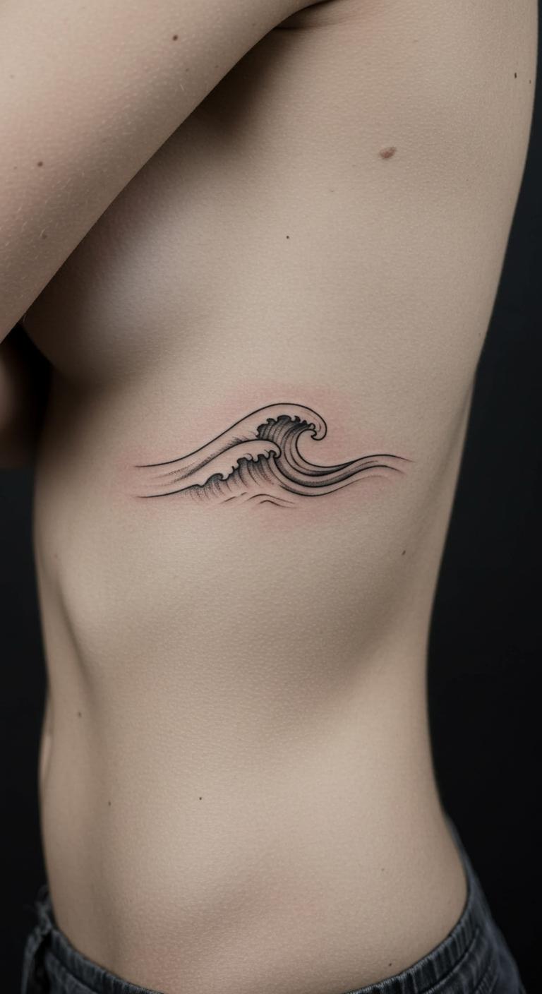 Side ribs offer a discreet, intimate option. A wavy line adds a personal touch. Draw ideas on your side with safe markers. Search for early-bird specials at tattoo parlors. Small pieces keep sessions affordable. This area fits those wanting something close to the heart. Test with body stickers. Clean and protect with simple bandages. Go for designs that mean something to you.