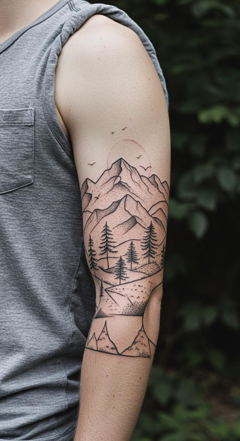 Mountains or trees make for a straightforward nature sleeve. Use basic outlines to capture the essence. Sketch simple landscapes on paper as a free starting point. Find nature photos online and trace them yourself. It saves on professional help. Place elements along your arm for natural flow. Try drawing with a pencil at home to preview. This approach is easy on your wallet. Visit a nearby artist for quick sessions. Add details like a single tree to keep it bold. Focus on key lines to avoid clutter. Use apps on your phone to arrange the design. Build it step by step without rushing.
