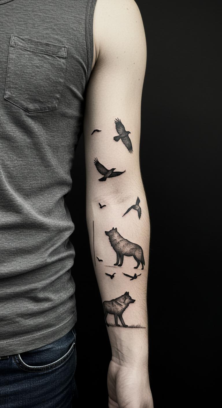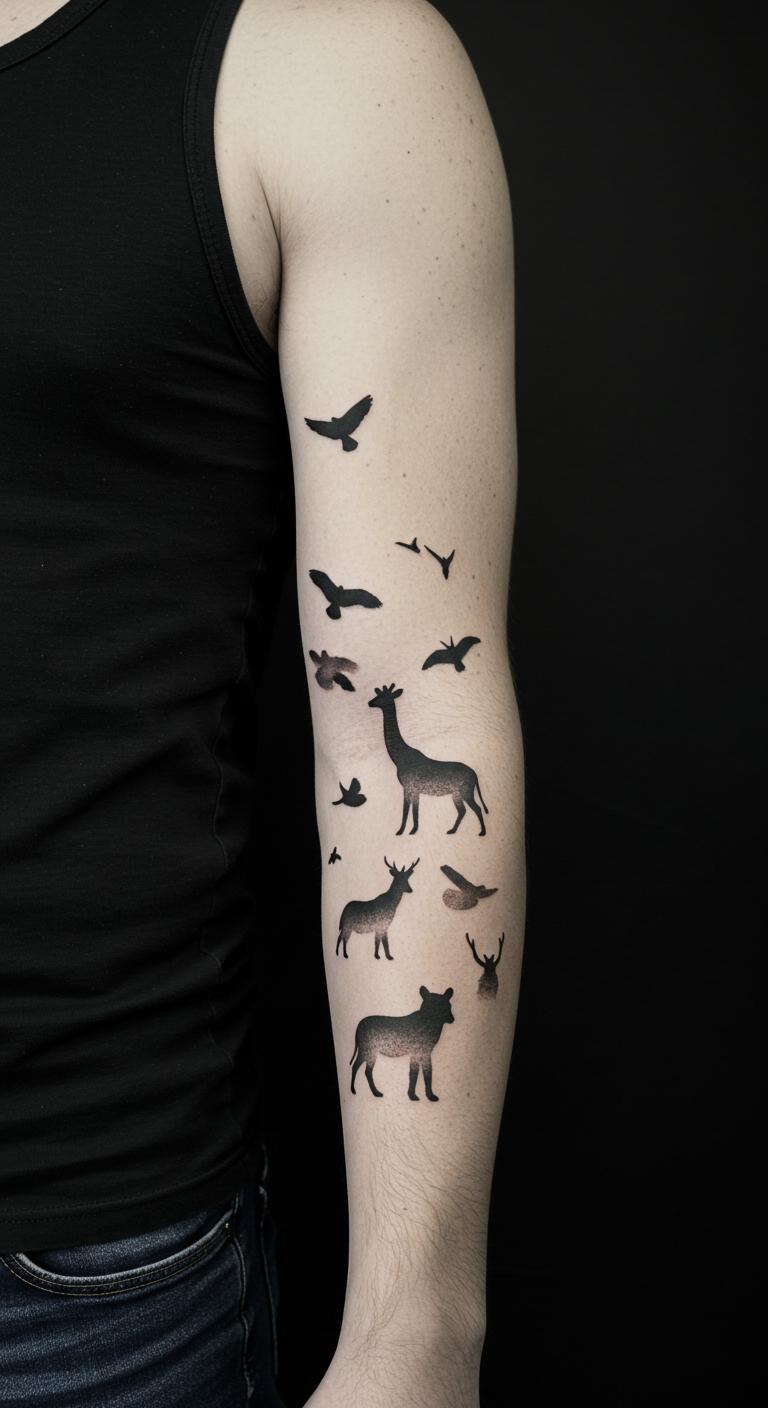 Silhouettes of animals like birds offer a striking, simple choice. Outline one animal at a time on paper first. Trace from free images online for your design. It keeps costs low. Position them to follow your arm’s muscles. Draw with a pen to test on yourself. This step avoids errors. Find budget sessions at local studios. Use bold edges to highlight each shape. Start small and expand. Practice with cutouts from paper. Make it personal by choosing meaningful animals.
