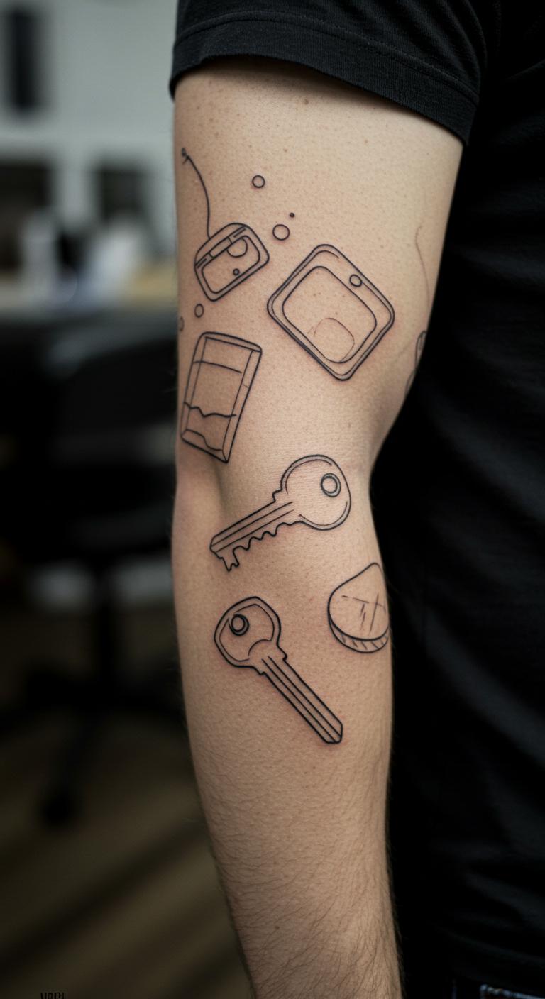 Objects like keys in lines. Sketch daily items. Free object drawings. Relatable and cheap.