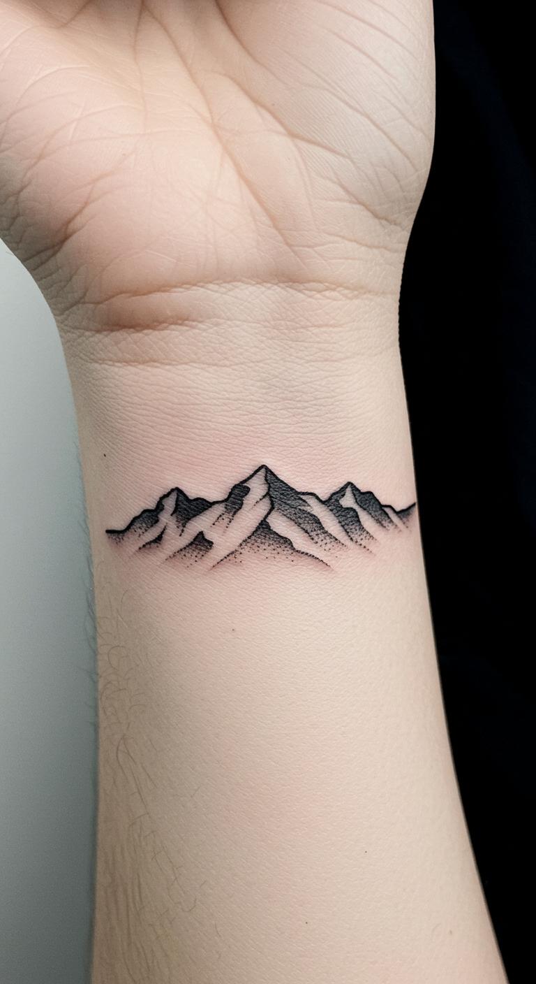 A mountain peak stands for challenges met. It rises with clean lines. Choose a triangular form. Go black to save. Sketch peaks quickly. Artists charge around $50. Keep it fresh with lotion. Try peak templates. This design builds confidence through heights. Align with your wrist. Consult pros. You’ll climb stronger.