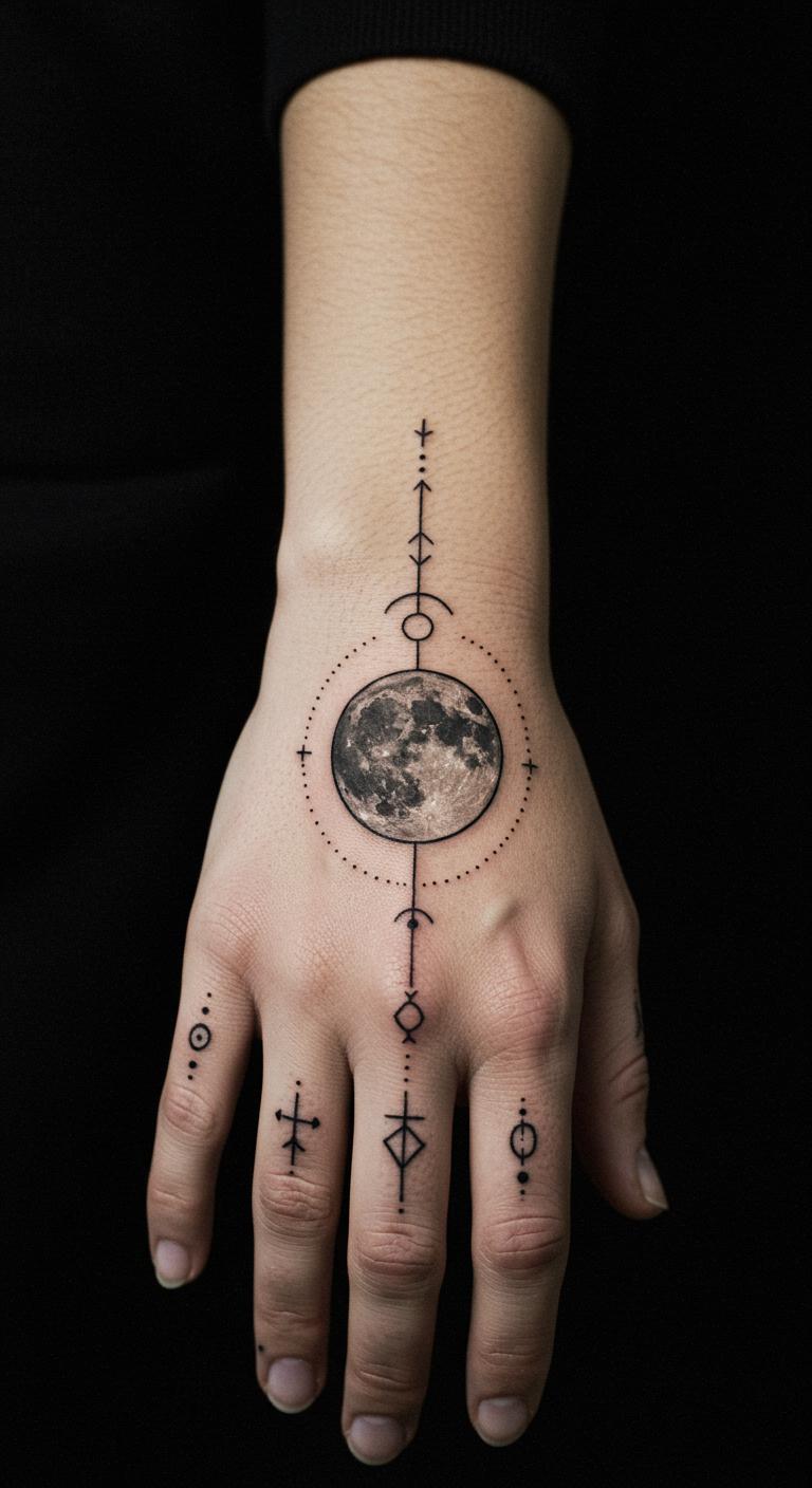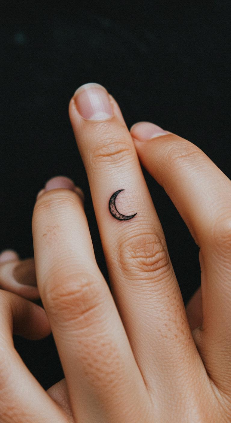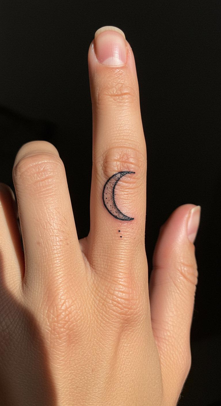 An everyday moon fits routine life. See a simple shape on your finger. It’s always in view. Trace with a ring. Finger bands mimic it cheaply. Slip on and go. Advice: keep it tiny. Wear it like jewelry. Ink is $40. No fuss needed. Practical daily.