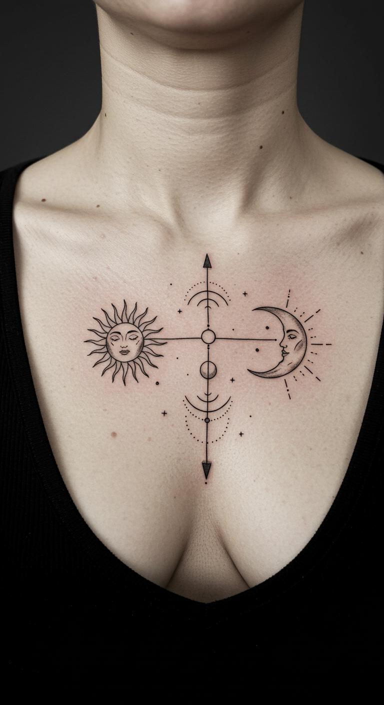 Sun and moon together mean harmony. Picture a sun dot next to a moon on your chest. This spot is meaningful. Sketch both symbols. Sun-moon decals cost little. Apply at home quickly. Tip: balance the sizes. Mirror the design for symmetry. Ink runs $90. Care involves daily checks. Ideal for pairs.