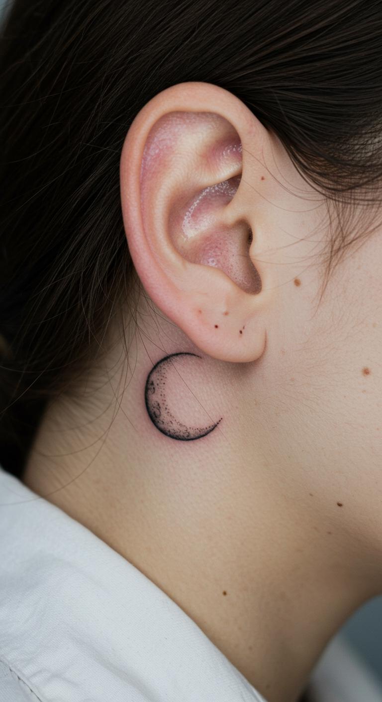 A moon behind the ear stays private. Envision a tiny curve there. Easy to conceal with hair. Use ear stickers for trials. They’re cheap and stick well. Place and forget. Simple: check for comfort. Test with earrings first. Artists charge $40. Heal fast. Great for discreet options.