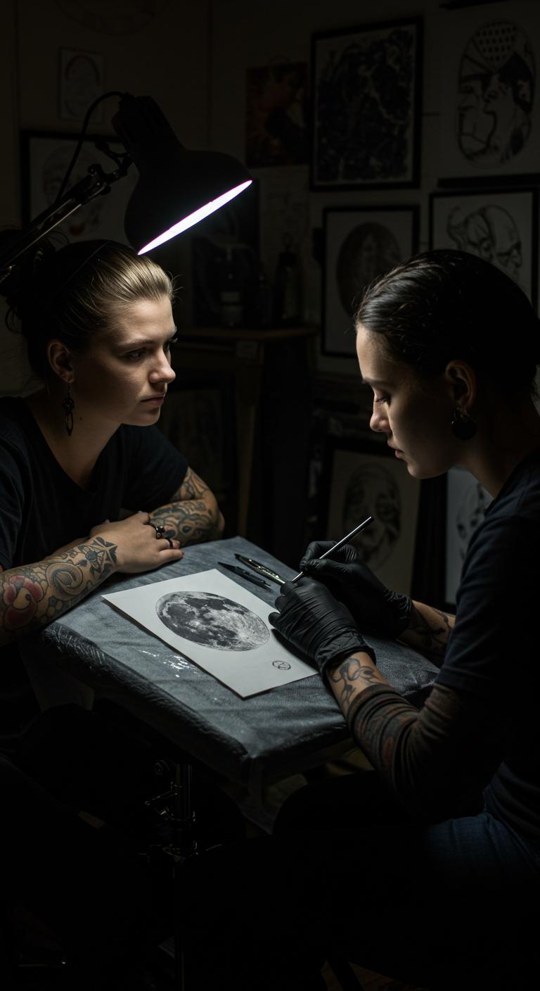 A small moon on the chest is beginner-friendly. Think of a basic circle. This area breathes easy. Draw it on with chalk. Mini tattoos from packs work. Stick on and wash off. Advice: keep it palm-sized. Choose breathable spots. Fees are around $60. Maintain with cream. Perfect for first ink.