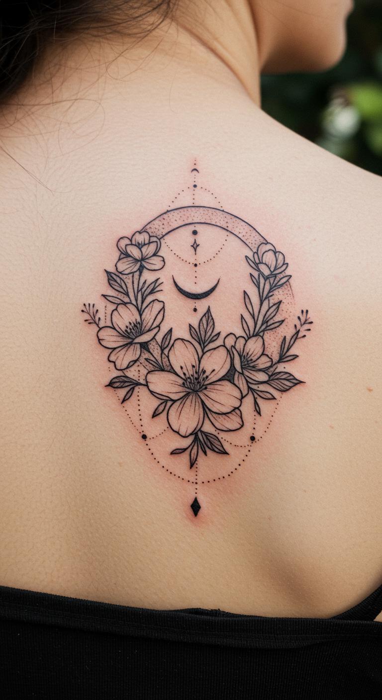 Flowers around a moon make a nature blend. Imagine petals outlining a crescent. Try the back for a larger canvas. Sketch flowers with crayons first. Temporary floral decals cost little and stick on easily. Place them and adjust. Keep it straightforward: use safe adhesives. Choose flower types you like for personalization. Sessions at a studio run $70-$130. Care involves gentle washing. It’s ideal for garden lovers.