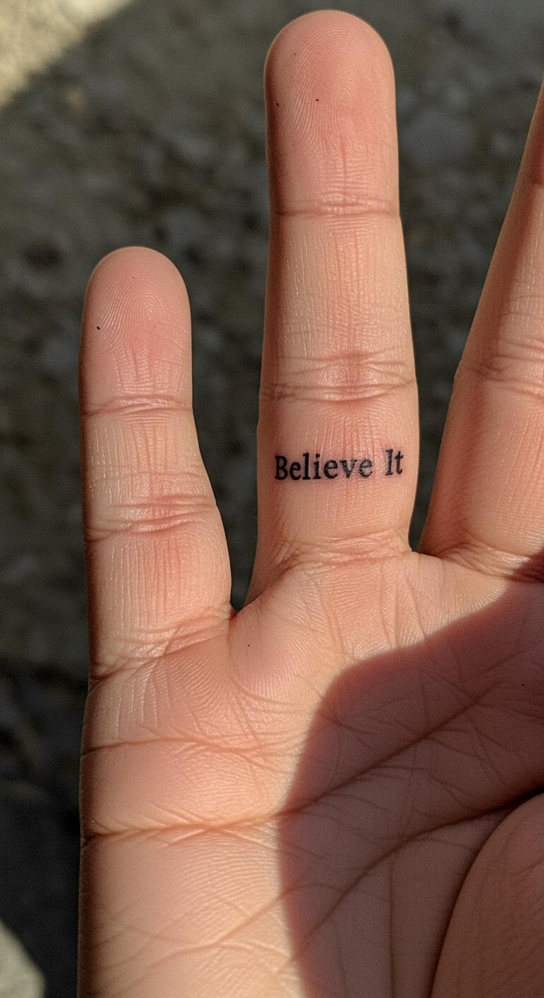 Pick the “Believe It” quote on your finger for motivation. It echoes Naruto’s catchphrase. Write it out with a pen first. Use temporary letters from crafts. Costs little for testing. Put it on a visible spot. Find script specialists locally. Go plain for budget reasons. Fits in a fast visit. Practice calligraphy with free tools. Simple action for daily reminders.