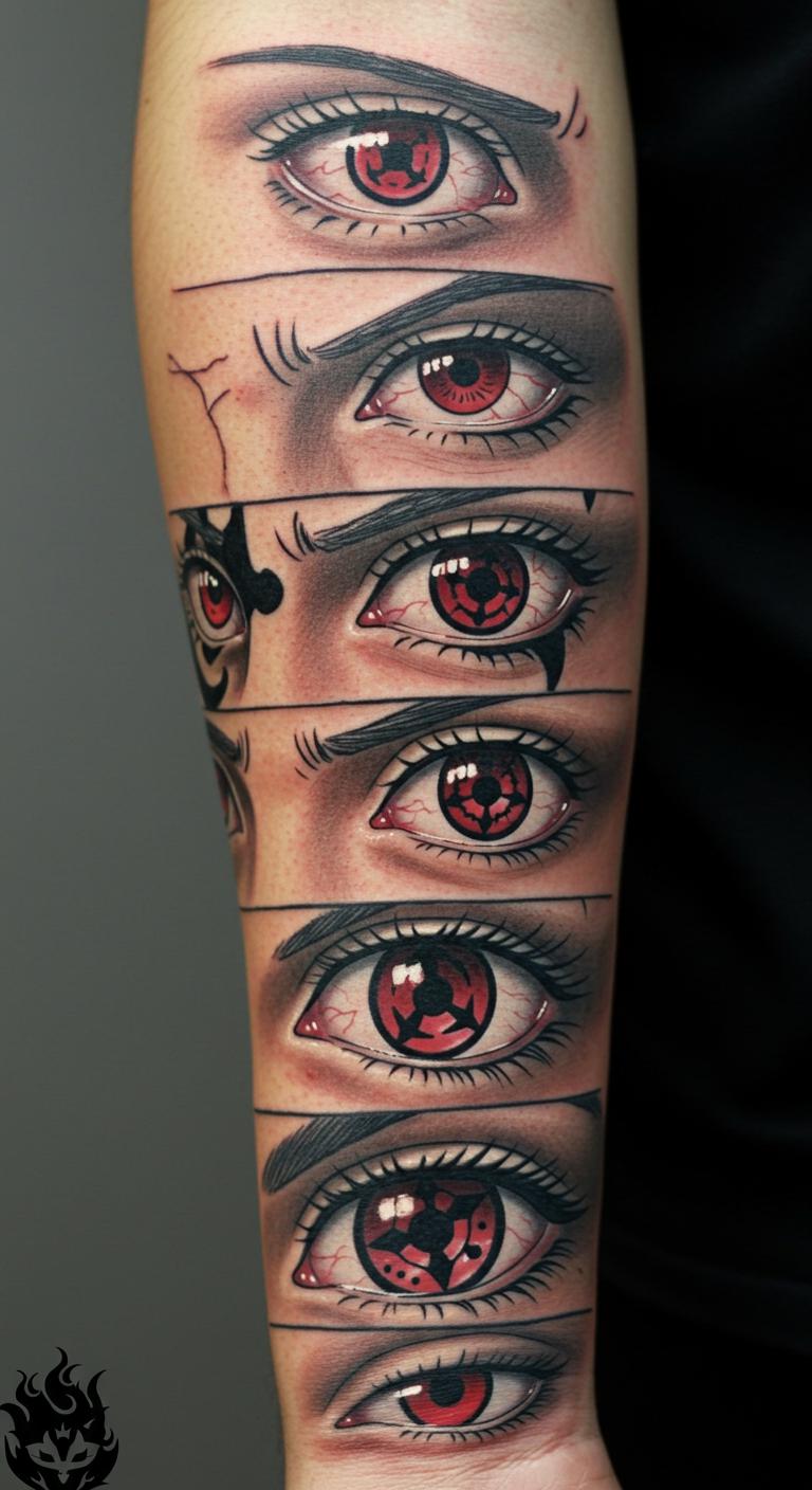 Consider Sharingan variations on your arm for evolution themes. It tracks eye changes. Draw multiple eyes. Use free design tools. No expense needed. Arrange them creatively. Find variation artists. Keep it simple for costs. One go for small ones. Test with multiple sketches. Varied inspiration.