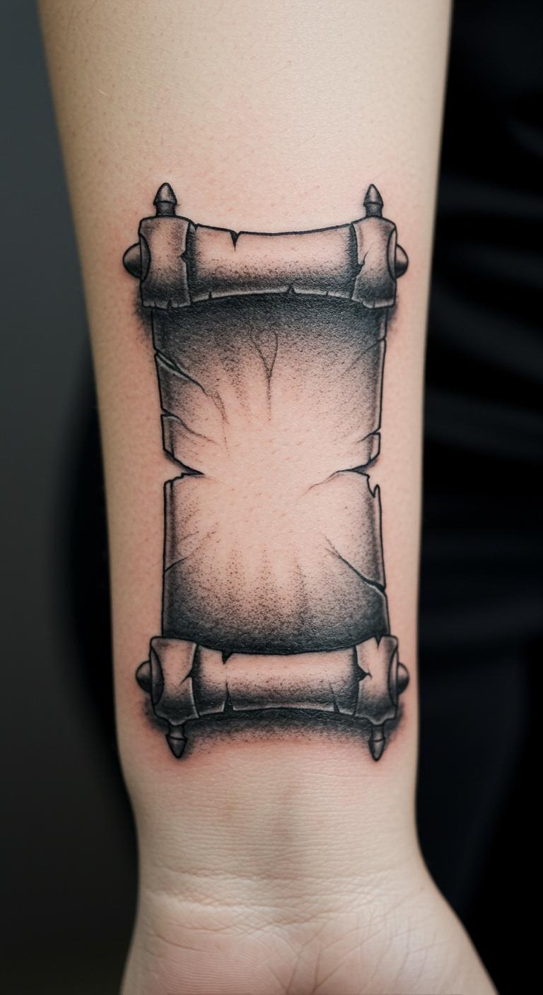 Think about a ninja scroll on your wrist for knowledge. It ties to missions. Roll it in sketches. Use paper rolls for mocks. Free and fun. Wear it daily. Find scroll artists. Go plain for savings. Quick setup. Practice with tape. Scroll of wisdom.