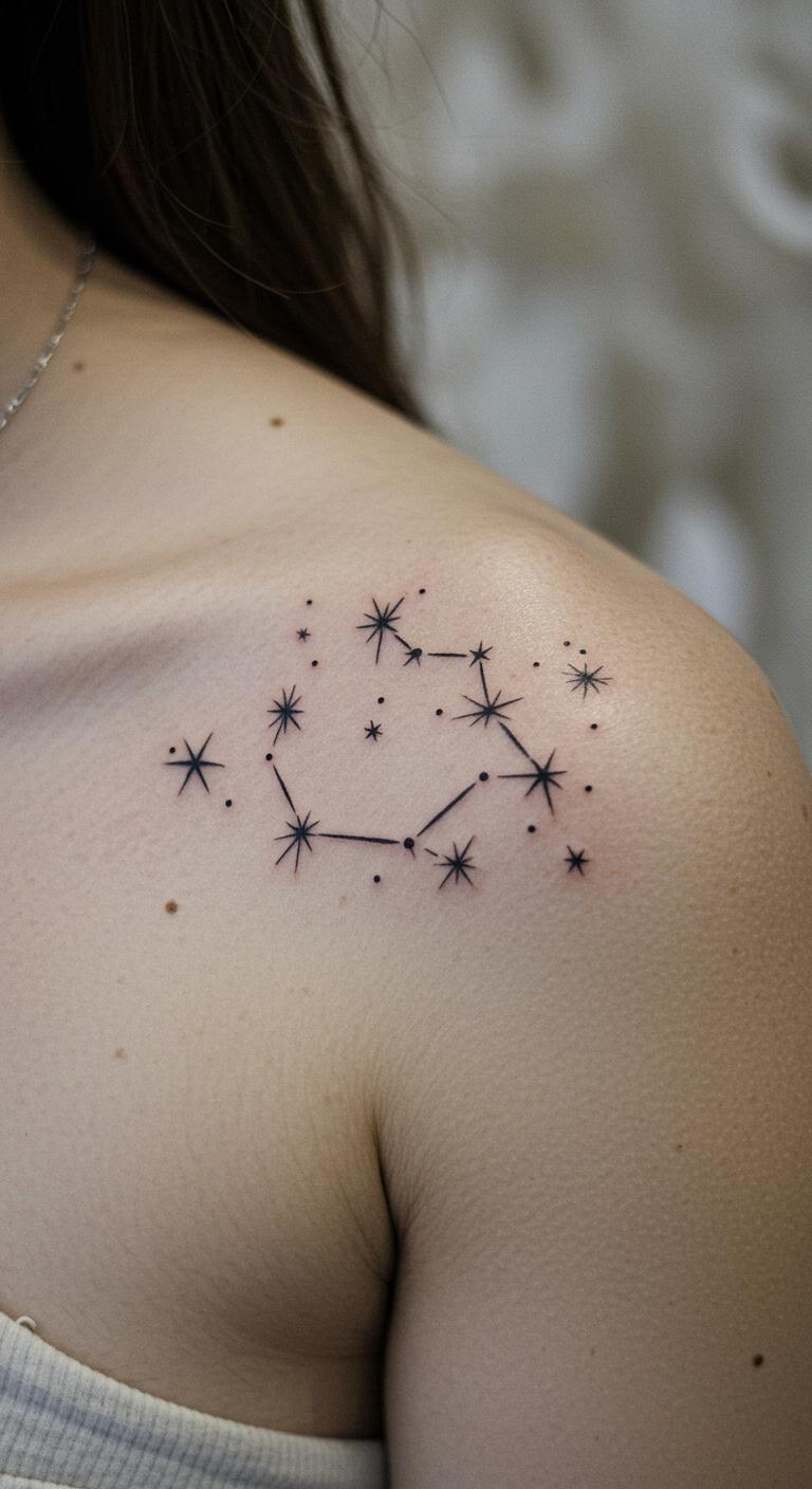 A star constellation tattoo maps the sky in one line. It’s your guide. Draw dots and lines on paper. Connect them. Budget: Online groups offer shares at $45. Use star stickers to plan on skin. Easy adjustment. Put on your back for wonder. Constellations personalize journeys. The ink lasts.