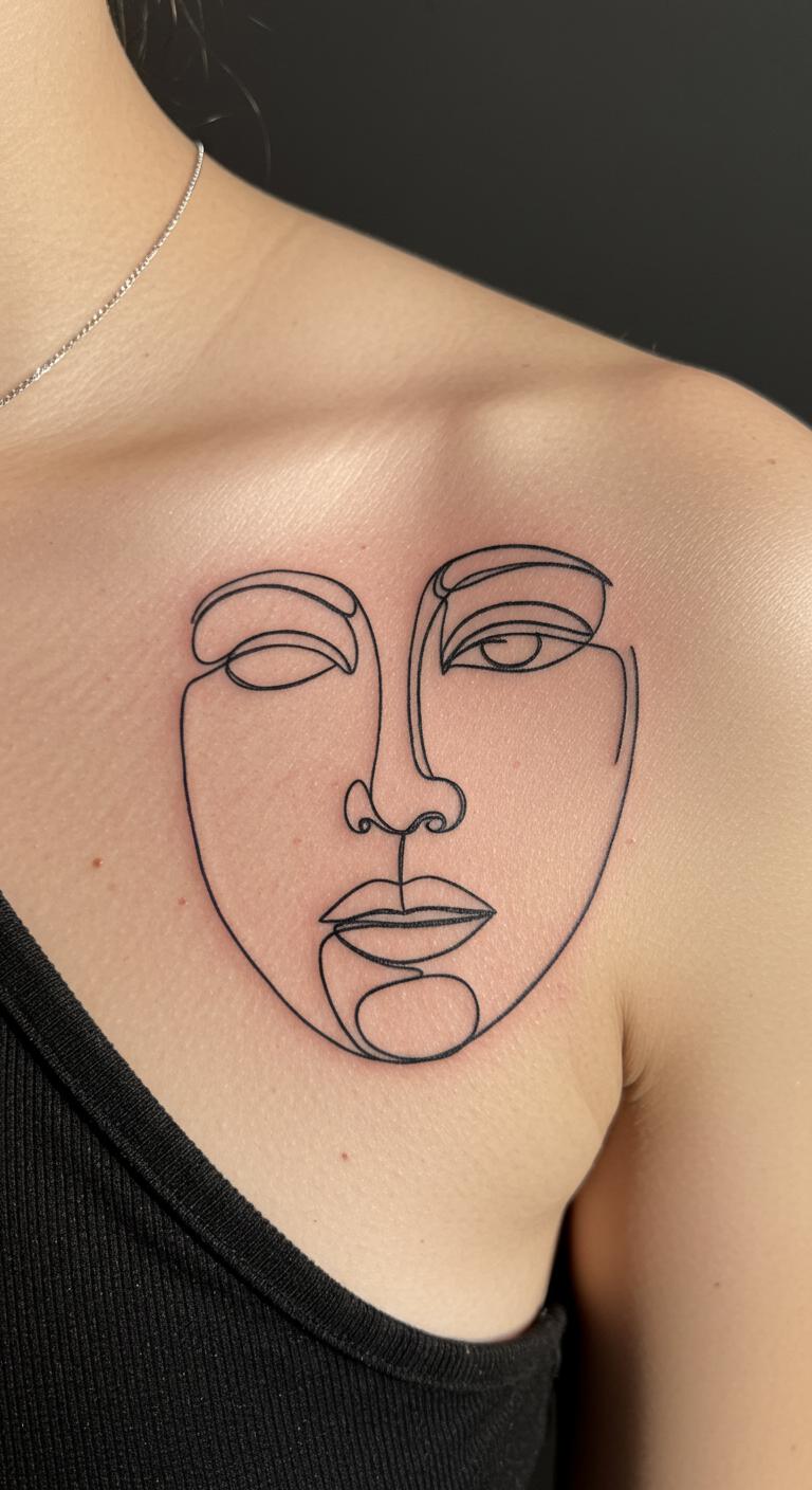 An abstract face tattoo captures emotion with just one line. It’s a modern take on portraits. Sketch a face profile on a mirror to see how it fits. Simple tools like a pencil work fine. For saving money, visit community tattoo events where prices drop to $30-60. Draw the outline on your skin with washable marker first. This DIY step avoids mistakes. Put it on your arm for easy viewing. Faces add a personal story, like a loved one’s feature. Quick sessions make it ideal for beginners.