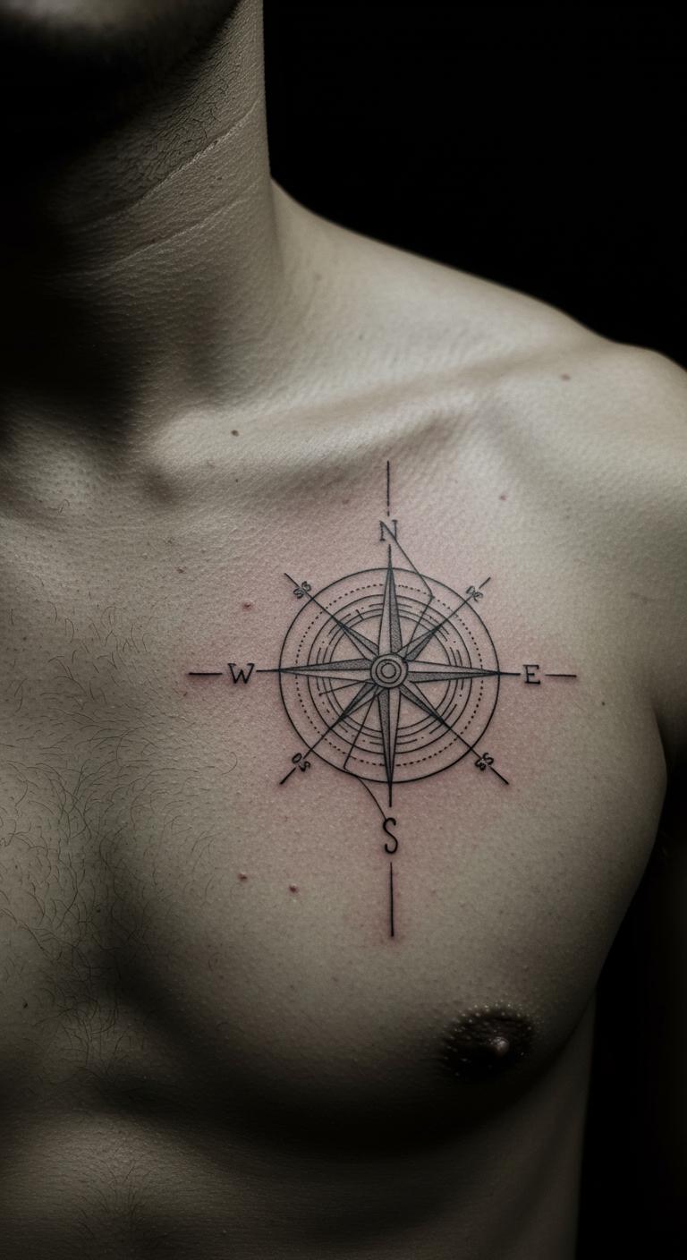A compass tattoo guides with one line, pointing paths. Sketch north symbols. Keep points clear. Find street artists for $40 deals. Draw with a protractor on paper. Accurate prep. Place on your back for direction. Compasses navigate life. Design is quick to get.