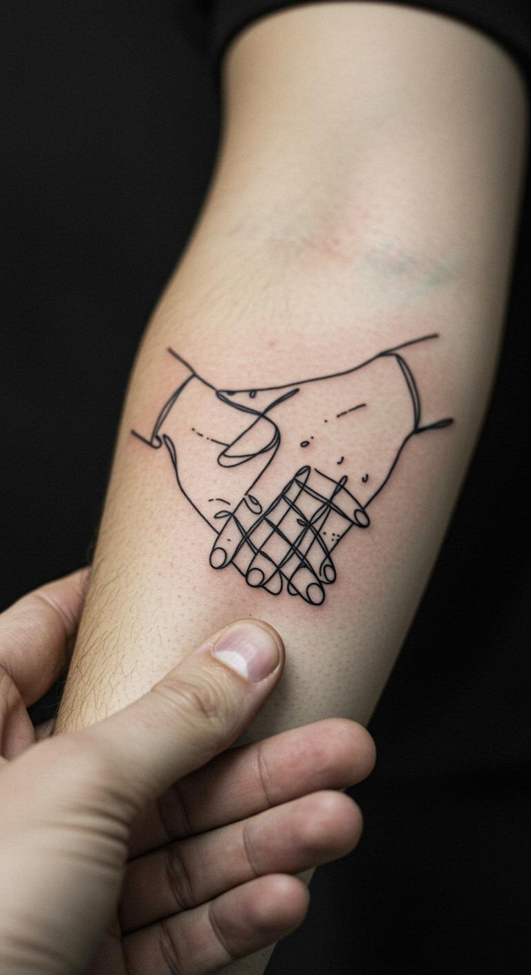 A hand holding tattoo connects in one line, meaning support. Draw two hands together. Practice the hold. Budget: Couple sessions at studios for $45 each. Use hand molds for tracing. Personal touch. Wear on your wrist for bonds. Hands unite designs. Process is rewarding.