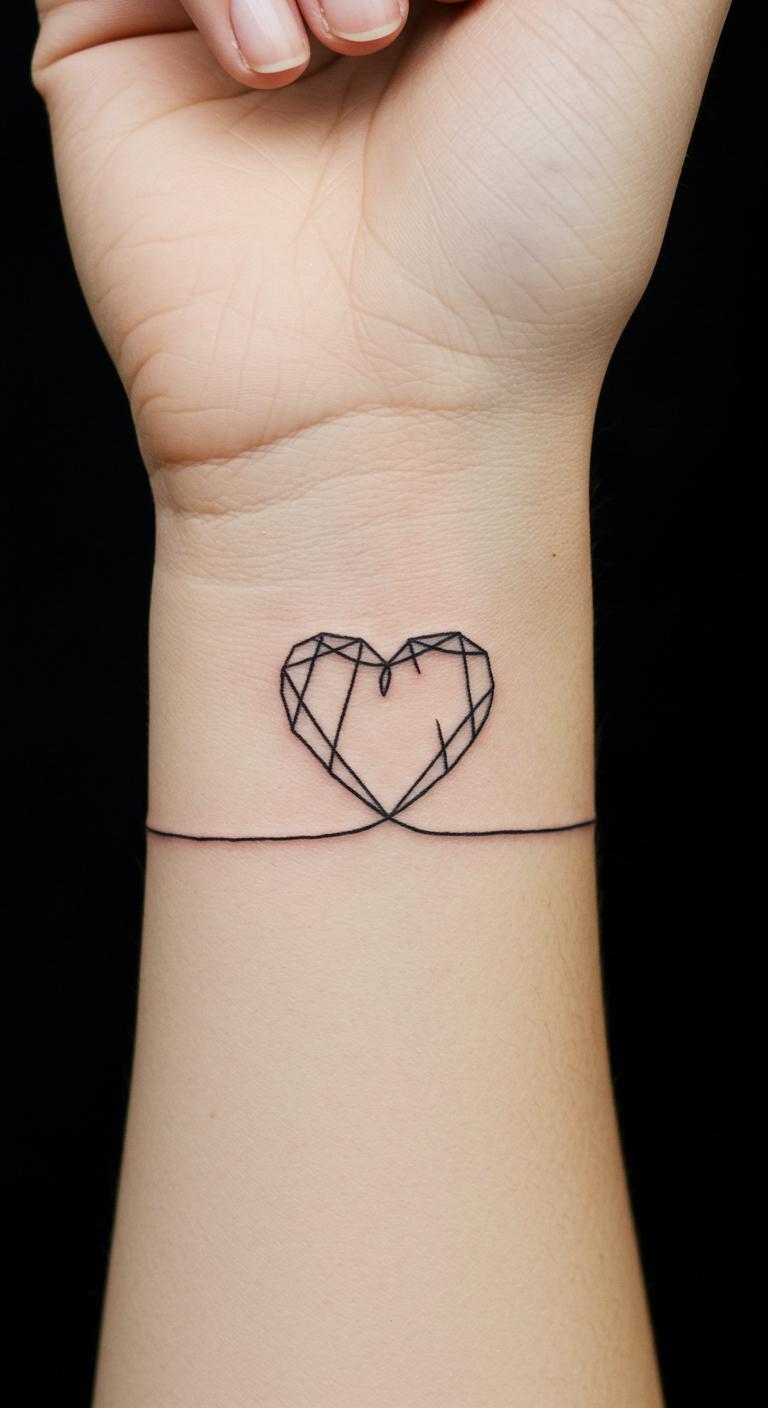 A geometric heart tattoo says love in a sharp, clean way. One line forms a shape that stands out yet stays simple. Draw hearts on paper to experiment with sizes. Use graph paper for accuracy. Budget-friendly? Look for group tattoo deals online, often under $50. Try a temporary tattoo sticker to preview it. Stick one on and wear it for a day. Place on your hand for constant reminder. Hearts pair well with dates or names. Sessions take minutes, perfect for a lunch break.
