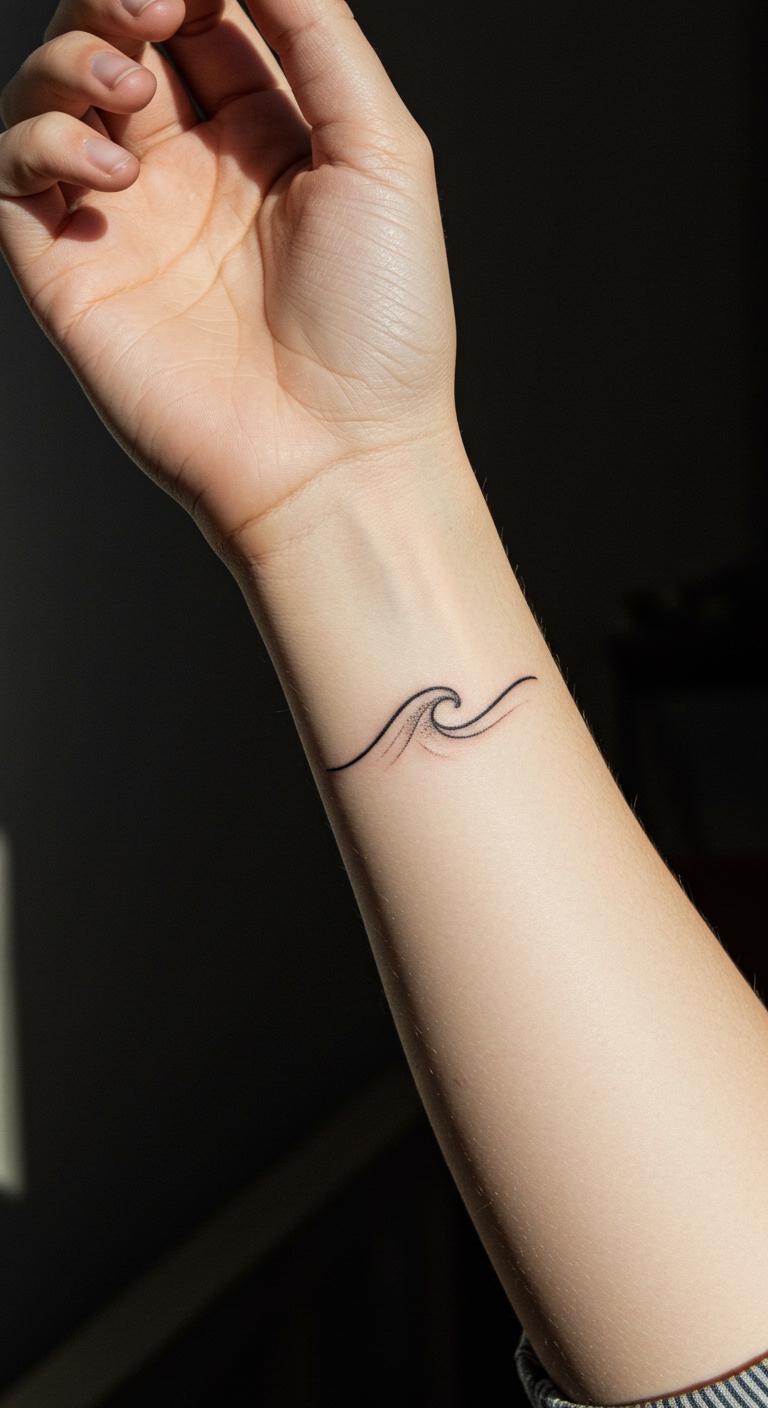 Think of a gentle wave as your go-to design. A single fine line curves across your skin. It looks like the ocean’s rhythm frozen in time. Start with a sketch on paper first. Use a pen to draw waves from memory. This helps you visualize the flow. Find an affordable artist online. Check local studios with reviews under $100 for consultations. Practice drawing on your arm with washable markers. It makes the real tattoo feel less intimidating. Keep it small for less pain and cost. Place it on your wrist for easy hiding or showing. Bold the key: fine line wave. Try this at home by tracing wave shapes from free online templates. Get ink done during off-peak hours for discounts. Simple steps like these make it accessible.