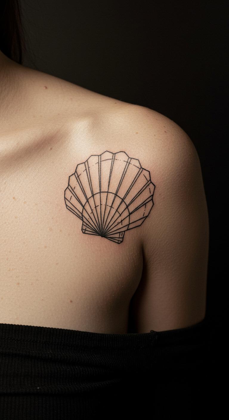 Picture a shell made of straight lines and angles. It turns nature into modern art. Draw a basic triangle on paper to start. Add curves for the shell edge. This DIY step refines your idea. Look for budget artists on social media. Many charge under $150 for small pieces. Use free apps to design your own version. Sketch it on your body with temporary ink. Pick a spot like your shoulder for balance. Geometric shell adds a cool twist. Experiment with paper cutouts at home. Cut shell shapes and trace them. Book a session during weekdays for lower prices. Easy actions like these keep things straightforward.