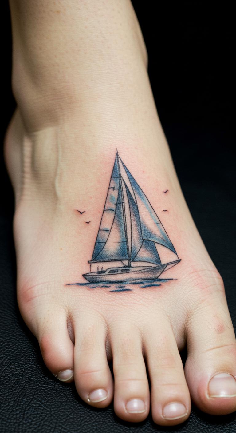 See a sailboat with just a few lines. It sails through your story. Draw a boat on paper first. Add a sail top. This at-home trial perfects it. Check online for cheap sessions. Costs start at $60. Use temporary tattoos to preview. Put it on your foot for adventure. Sailboat design represents journey. Sketch with rulers at home. Adjust sizes. Opt for flash deals. Simple and effective.