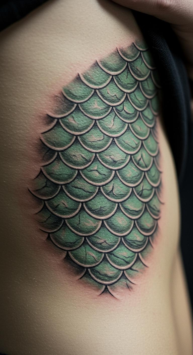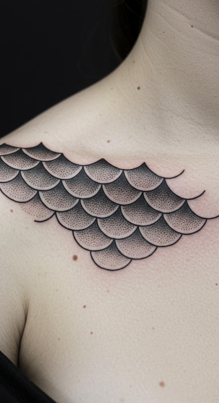 Consider overlapping circles for scales. It mimics fish skin with minimal effort. Draw small loops on paper first. Arrange them in a pattern. This at-home trial helps perfect it. Look at local tattoo shops with beginner rates. They might charge $70 or less. Use markers to test on your body. Put it on your collarbone for elegance. Fish scale pattern feels organic. Find free design apps to create your own. Print and practice drawing. Book during slower months for discounts. Simple tweaks make it achievable.