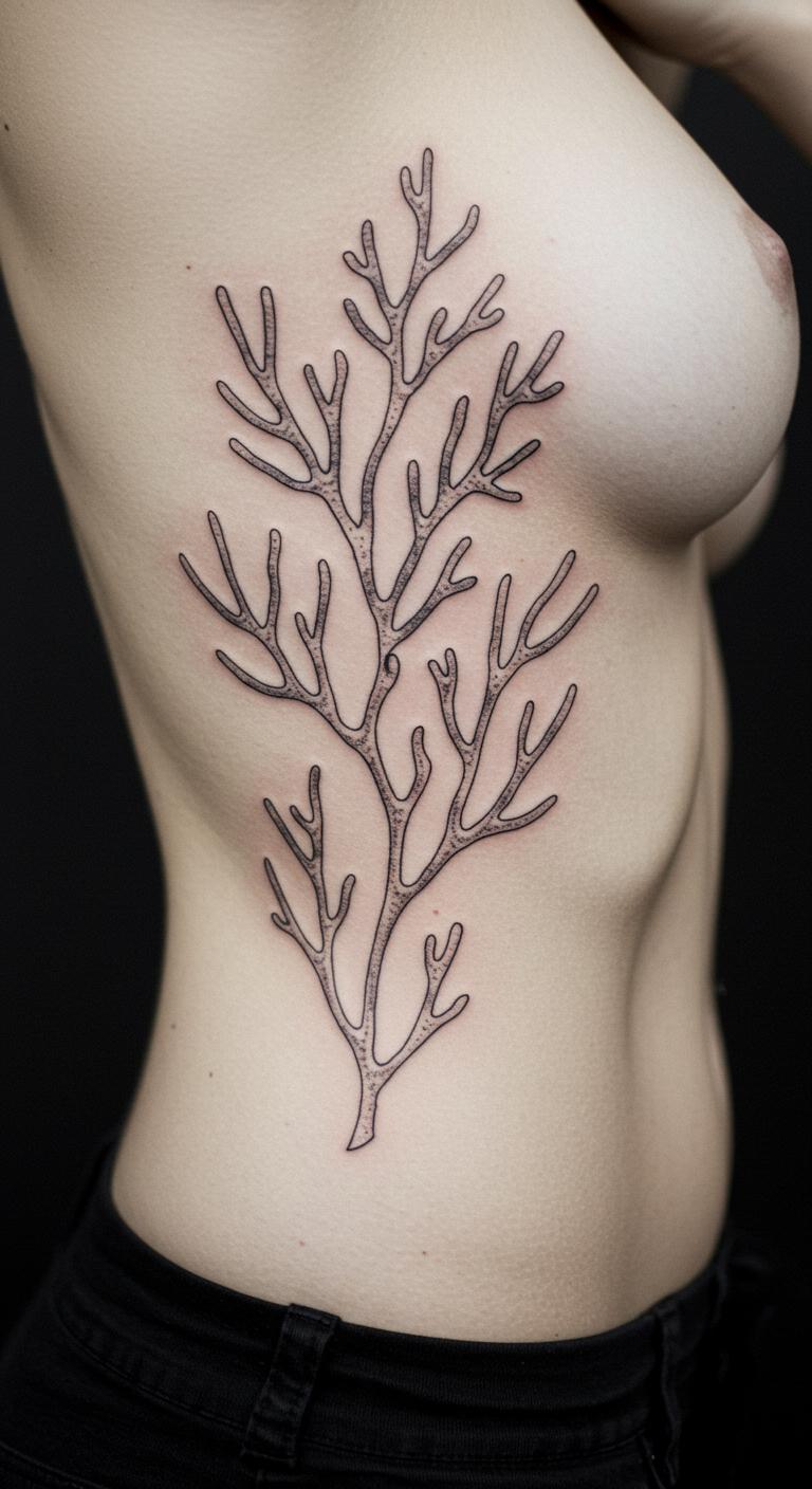 Picture branching lines like underwater coral. It adds a natural touch. Doodle branches on a page to begin. Connect lines for the shape. This at-home exercise refines details. Find artists with promotional offers. Expect $100 for this size. Use body-safe markers for trials. Position it on your rib for artful hide. Coral branch brings depth. Create patterns with twigs and paper. Trace your designs. Schedule in advance for deals. Make it practical and fun.