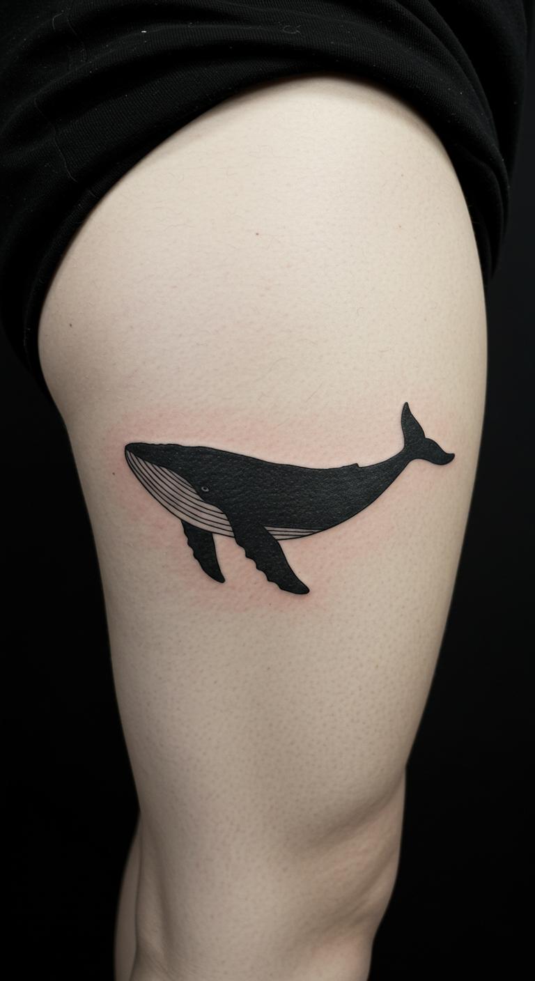 Imagine a whale’s simple shape in black. It captures the ocean’s giants. Sketch a whale profile on paper. Fill in the form. This DIY step makes it yours. Check for artists with low rates. Around $85 for silhouettes. Try drawing with charcoal at home. Place it on your thigh for presence. Whale silhouette symbolizes peace. Find free outlines online to copy. Practice on paper. Book for budget times. Keep it simple.
