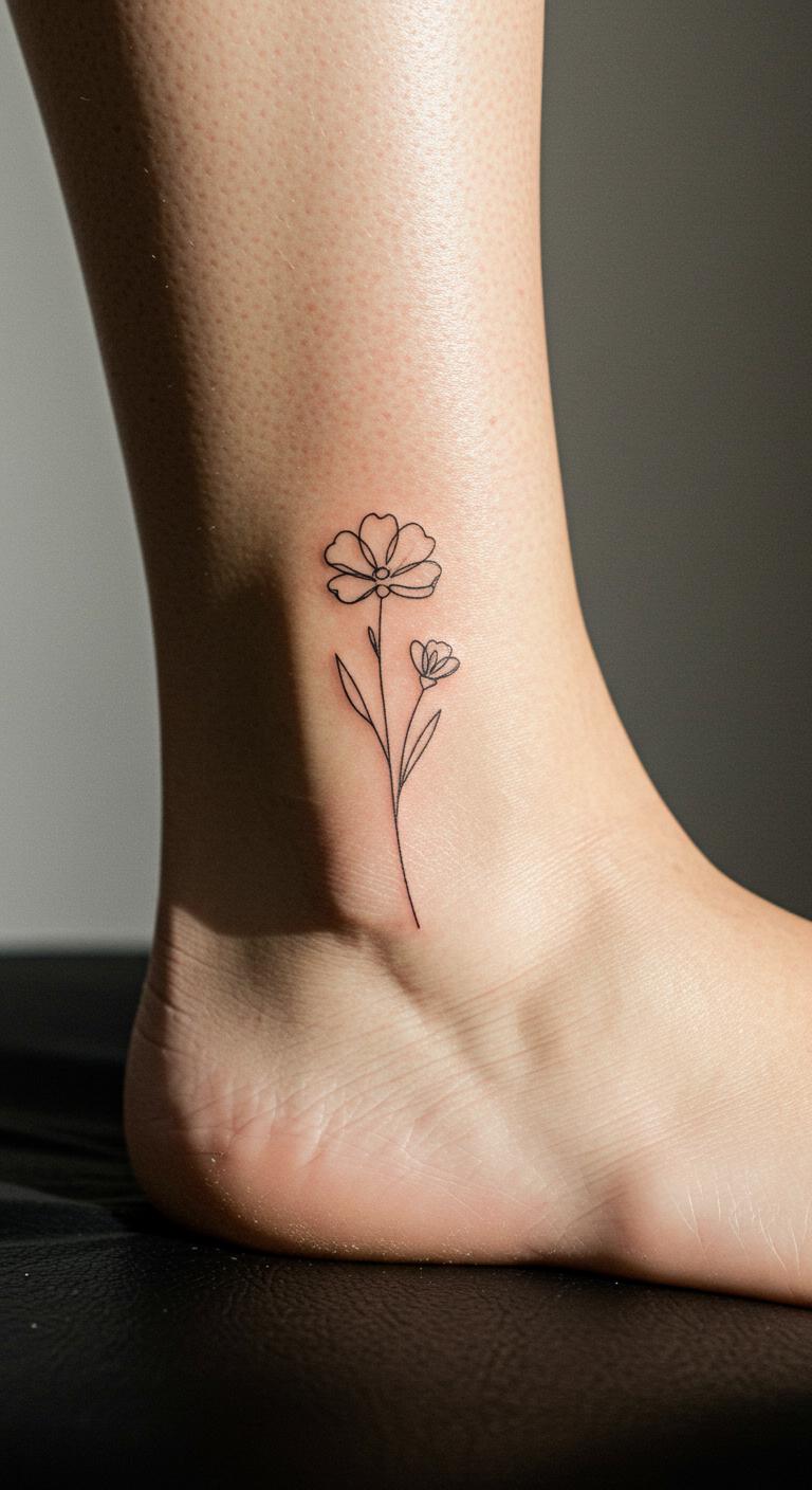 Think about a tiny flower drawn with one smooth line. It looks fresh and natural on your skin. Start with a simple sketch on paper. Use a fine-tip pen to trace a basic flower shape. This helps you visualize it before going pro. For budget options, find local artists who charge less than $100 for small designs. Try drawing your own version at home with washable markers on your arm. Keep aftercare simple: just clean the area gently with soap and water. Bold key spots like the ankle for easy hiding. Practice drawing curves to get the flow right. You’ll love how it adds a touch of nature to your daily style. Go for local sessions to save on travel costs. Make it personal by choosing a flower that means something to you.
