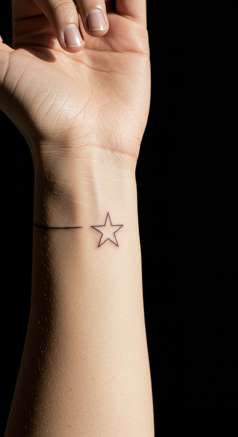 Imagine a star made from a single flowing line. It shines with a cosmic feel on your wrist. Sketch it out first on plain paper with a black marker. Add your own twists, like extra points. Look for affordable artists online who offer deals under $80. Try a temporary tattoo kit from a drugstore to test it. Place it where you can see it daily for motivation. Clean tools at home if you’re practicing designs. Bold the star’s center in your sketch for emphasis. Keep sessions short to fit your schedule. Personalize it with a favorite constellation element. This idea brings a bit of sky to your style without much fuss.