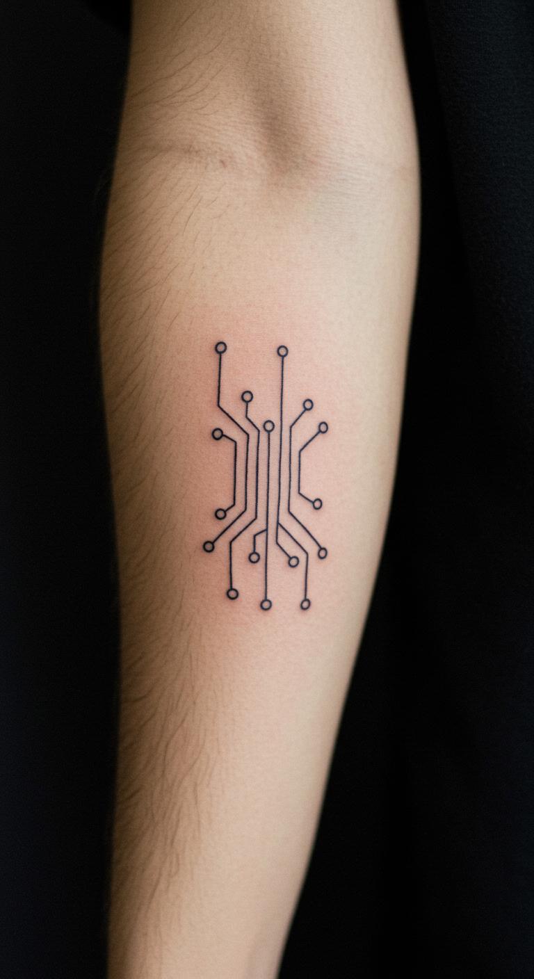 A circuit line adds a techy feel. Sketch circuits on paper quickly. It’s easy with a marker. Look for $45 deals online. Use electronic drawings for tests. Place on your arm for tech flair. Clean up fast. Bold the wire parts. Pick short sessions. Personalize with gadget elements. This design fits the digital age on a budget.