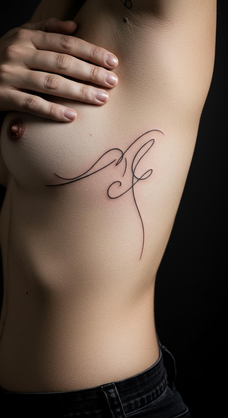 Script in one line adds feminine grace. Write letters on paper first. It’s straightforward. Look for $55 rates. Use script stencils for trials. Place on your rib for privacy. Clean paper easily. Bold the script’s flow. Schedule as needed. Personalize with names. This idea enhances your look simply.