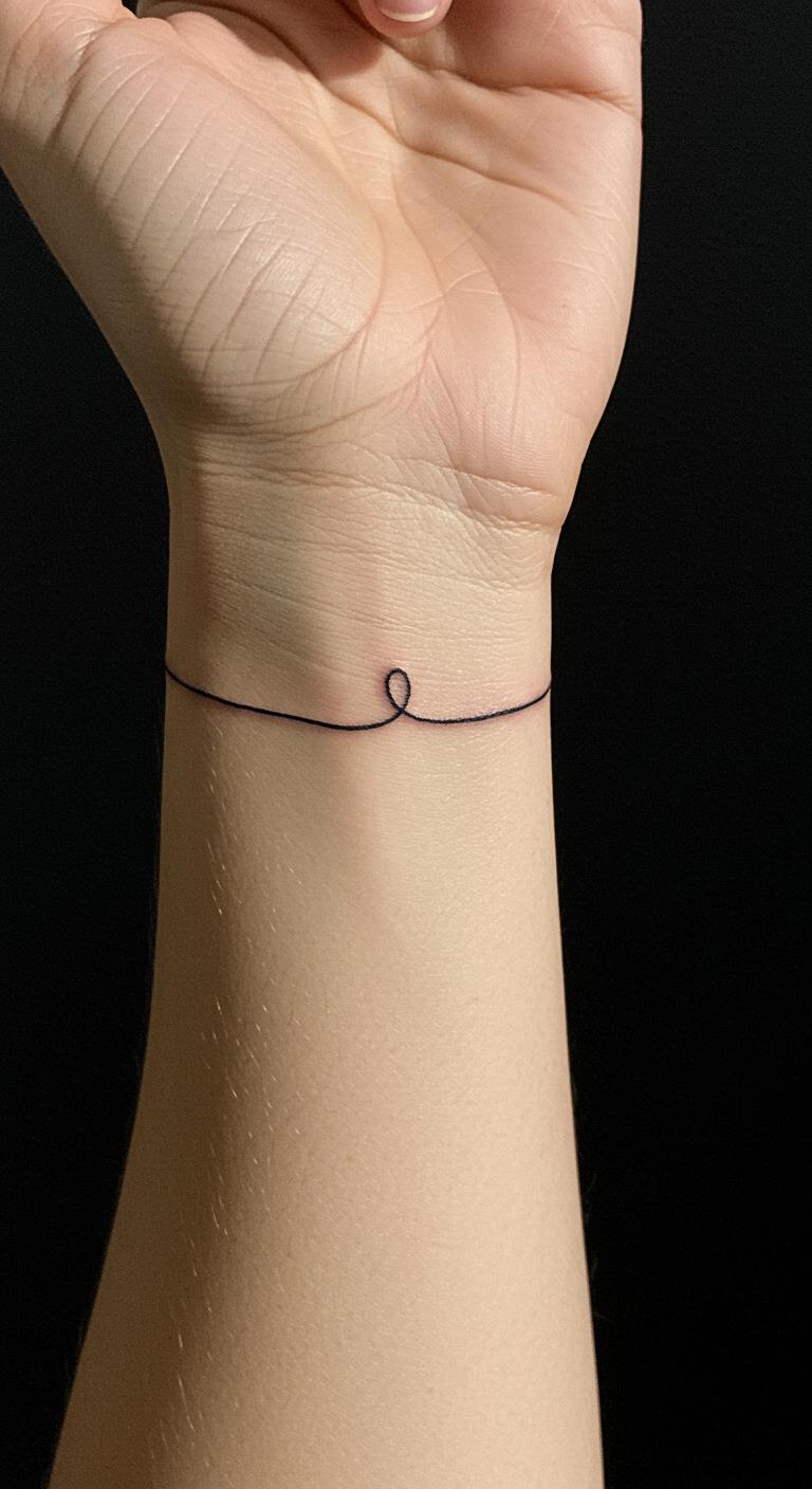 A basic loop on your wrist feels modern and easy. Draw a circle on your hand with a pen to plan it. This takes just minutes at home. Find artists in your area for under $75 to keep costs low. Use sticker tattoos as a trial run. Position it for both hiding and showing off. Wipe your skin clean after drawing practice. Bold the loop’s curve in notes if needed. Schedule quick appointments to save time. Make it unique by adding a small detail you like. This design works well for everyday wear and adds subtle charm.
