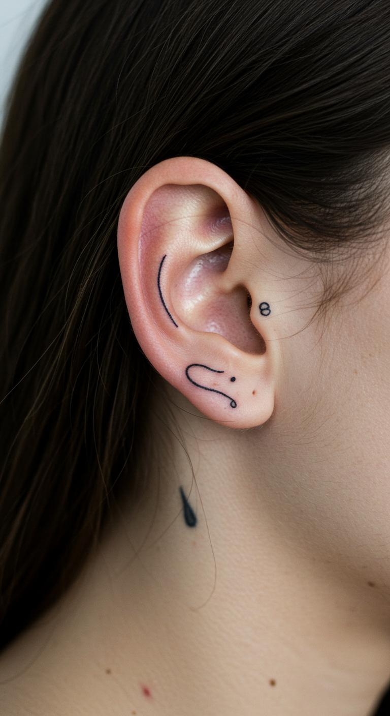 A gentle curve behind your ear offers discreet style. Sketch a soft line on paper first. It helps map the spot. Search for budget artists charging around $60. Try ear-shaped templates from craft stores for practice. Hide it under hair or show it off as you wish. Clean your drawing tools simply at home. Bold the curve’s end for clarity. Book short visits to fit your day. Personalize with a meaningful symbol. This idea keeps things elegant and low-key.