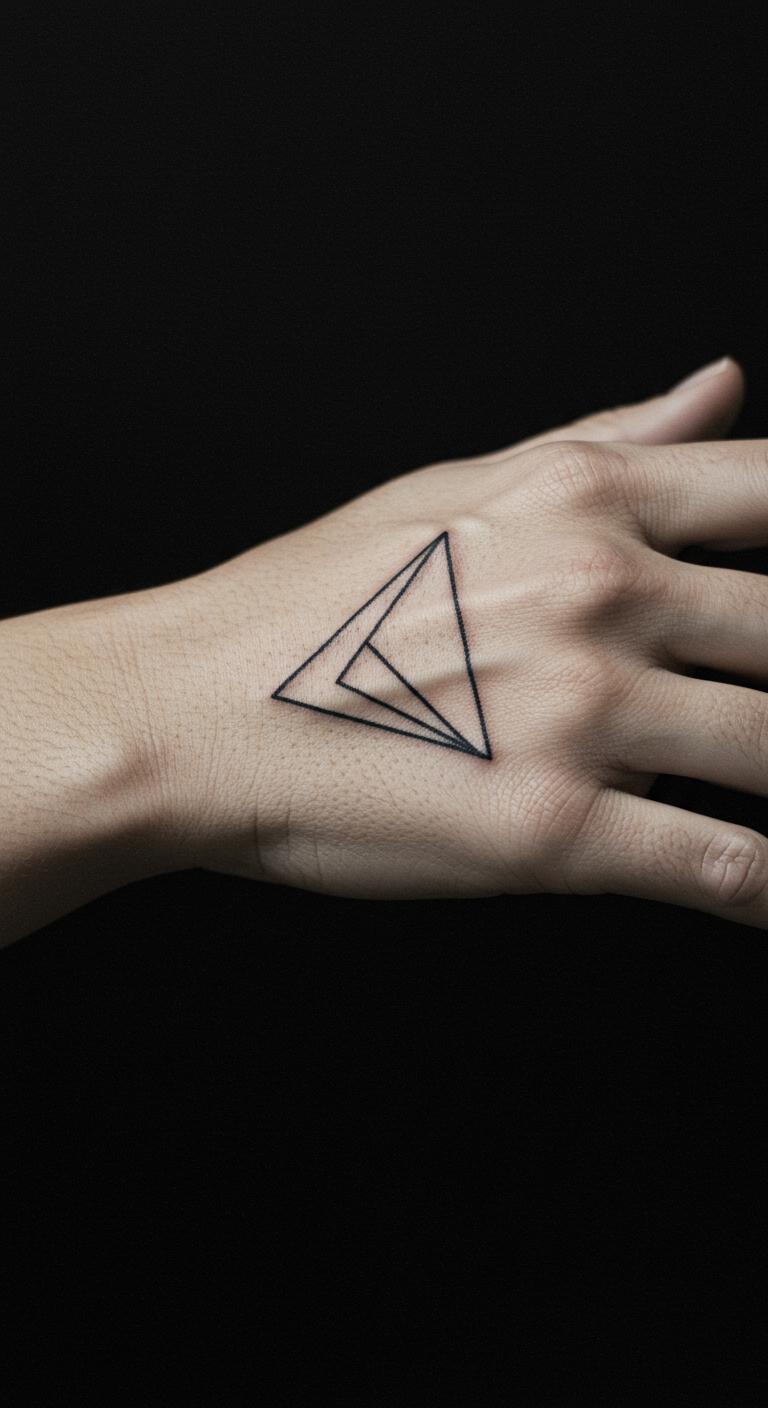 A triangle in a single line offers modern edge. Start with shapes on paper. Use what you have at home. Artists may offer for $50. Try geometric stickers first. Position on your hand for daily view. Keep sketches tidy. Bold the triangle’s points. Schedule brief visits. Add your twist to the form. This idea keeps things sharp and simple.