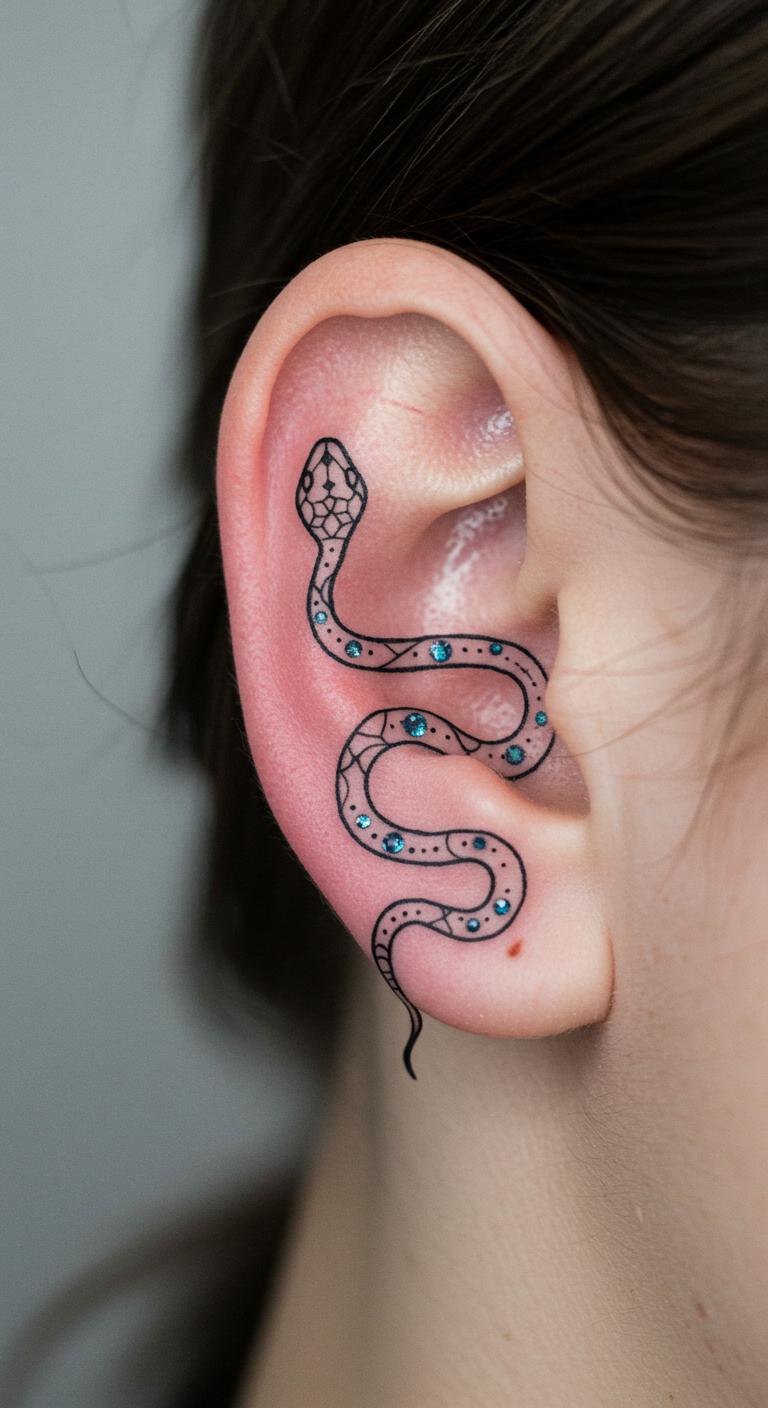 Dot it with jewels for sparkle. Put it on your ear for flair. Sketch dots like gems. Free jewel patterns online help. Look for dot specialists. Costs stay at $50. Use rhinestone stickers first. Apply and see. Make dots minimal and shiny. Your ear gets a gem-like mark. Cover with hair if desired. This design adds shine.