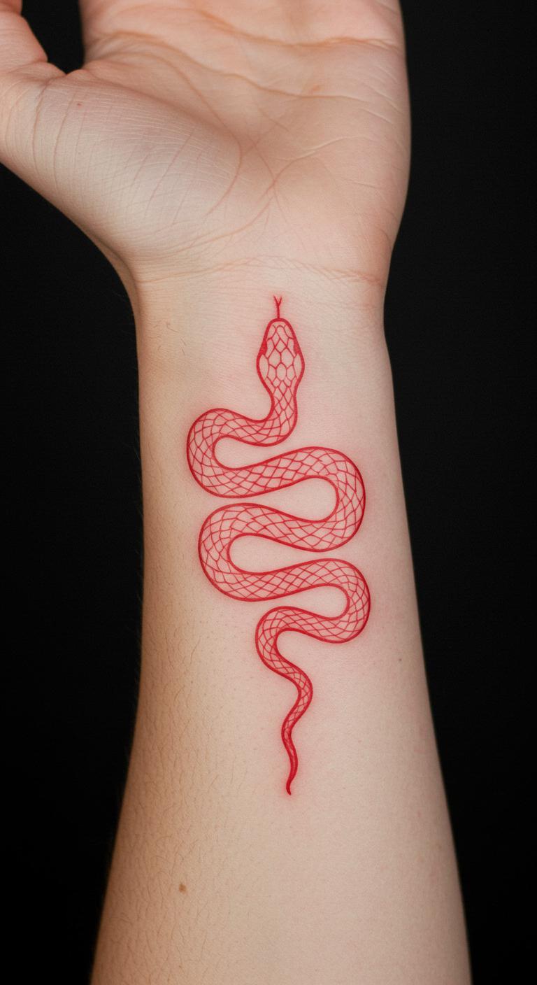 Go for a red snake to stand out. This color hints at energy and change. Place it on your wrist for easy views. Begin with colored pencils at home. Sketch the snake in red shade. Find templates online for free. Print and trace them. Look for sales at tattoo places. Red ink might cost a bit more, but stay under $80. Try fabric markers on clothes first. See how red pops. Add a small curve to the body. This makes it unique. Wear long sleeves to hide it when needed. Red washes easier in designs, so ask your artist. Keep the shape simple. Your wrist tells a story with this choice.